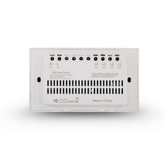 مفتاح جداري ذكي رباعي WiFi + RF433 | زجاجي لمس مقاوم للرطوبة