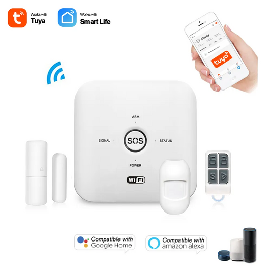 Smart home alarm system with Wi-Fi and SIM card support – compatible with Tuya Smart/Smart Life app – remote and voice control