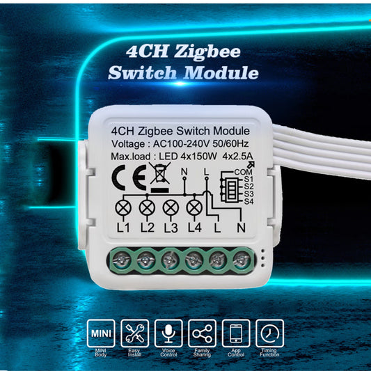 Guhestina Zîrek a Mini Zigbee bi 4 Kanalan (4 kanal) - Bi Tuya/Smart Life re dixebite