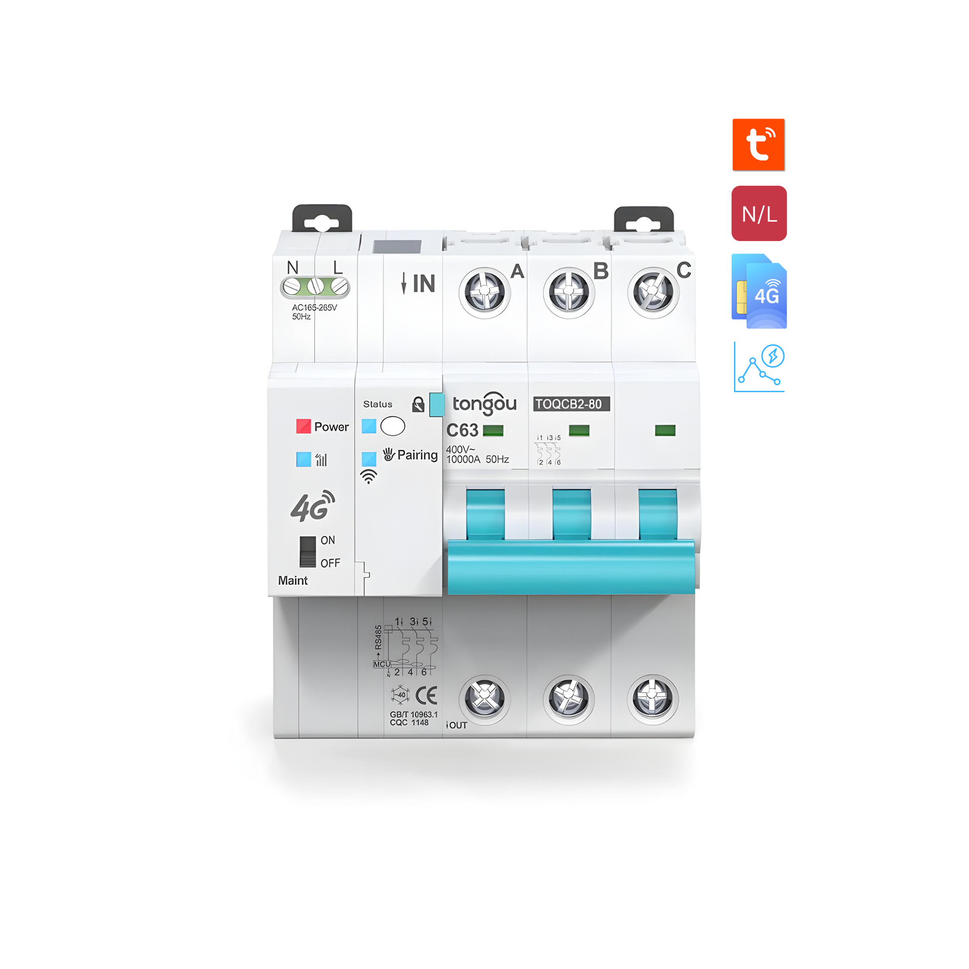 قاطع دورة ذكي ثلاثي الطور مع قياس الطاقة والتحكم عن بُعد (نسخة 4G) تطبيق tuya-smart life