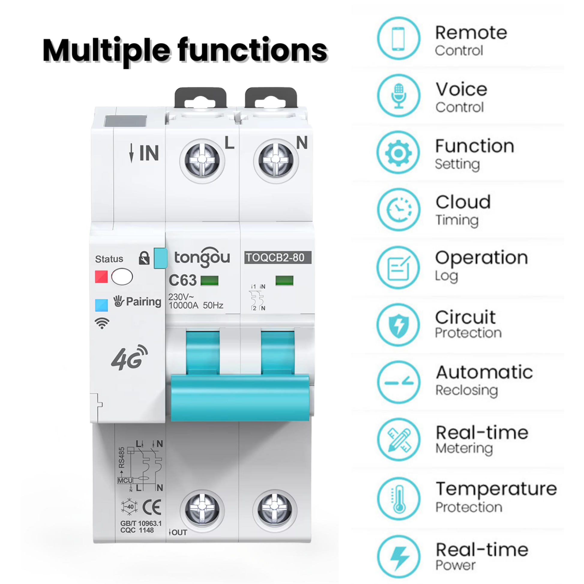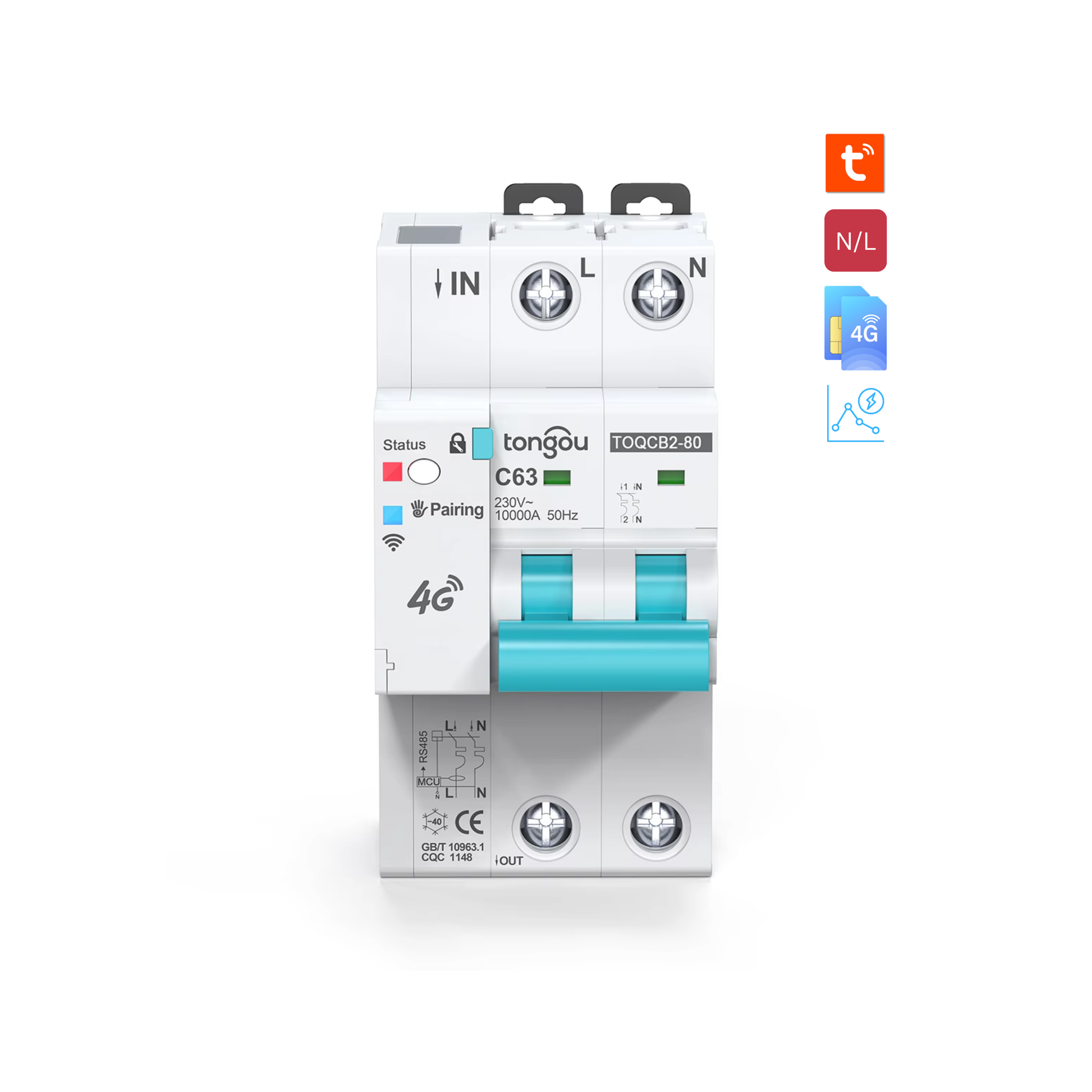 قاطع دائرة ذكي 4G (شريحة SIM) 2P مع قياس وحماية تطبيق تويا