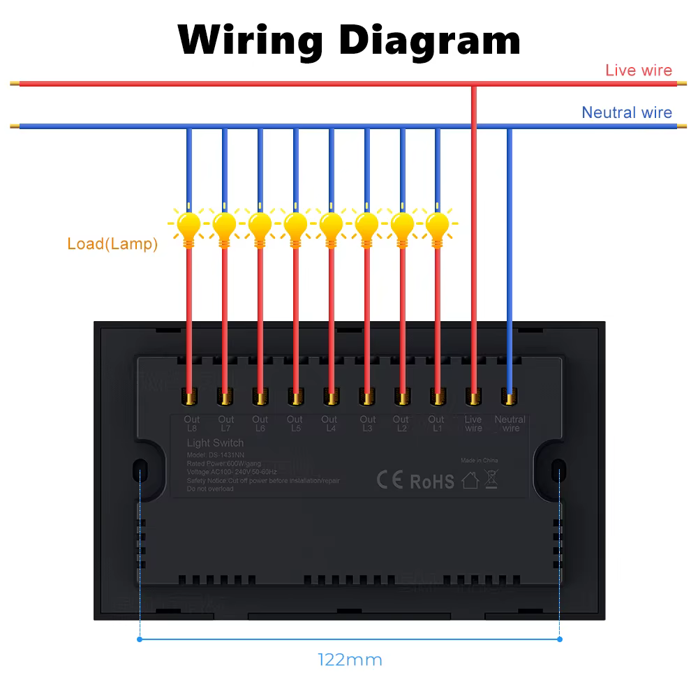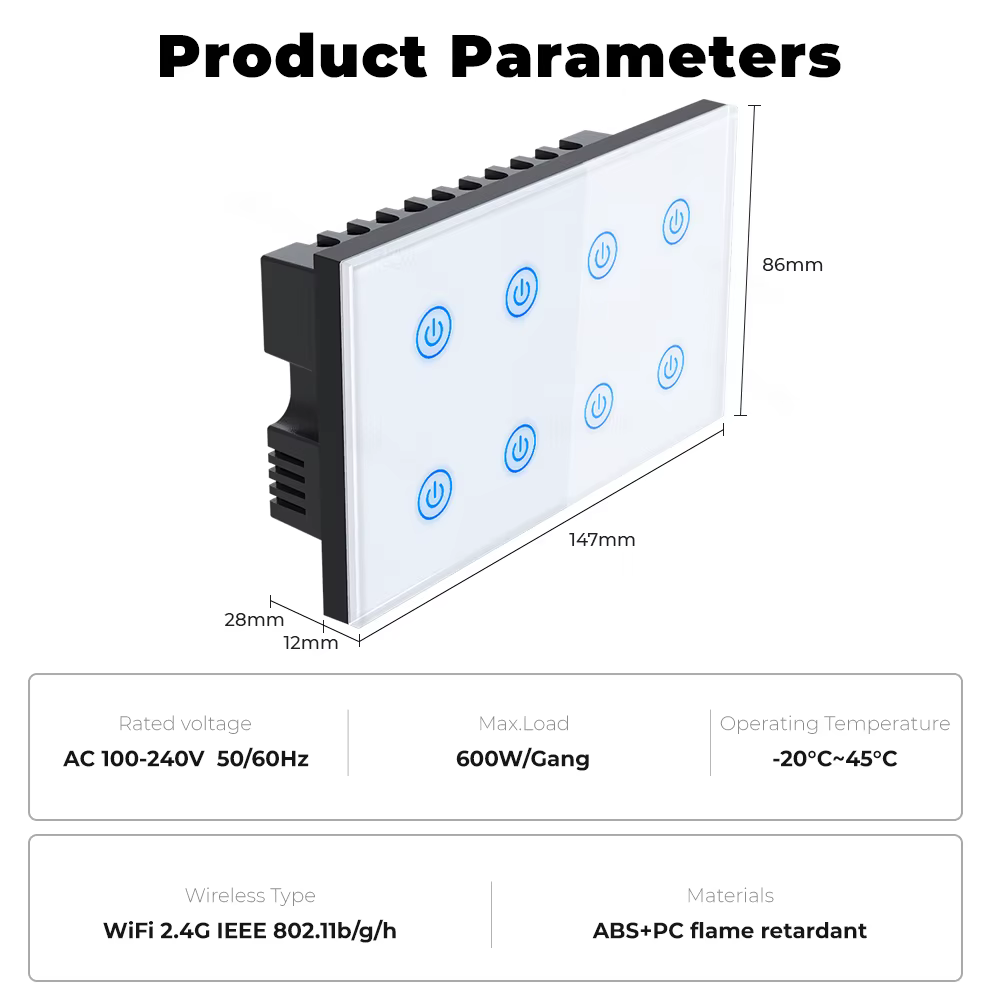 - عدد المفاتيح: 8 مفاتيح مستقلة (8Gang)