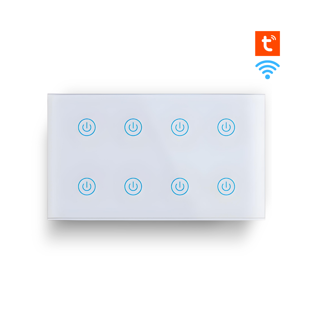 مفتاح جداري ذكي WiFi/Bluetooth بـ8 مفاتيح لمراقبة الطاقة والتحكم الصوتي – يعمل مع Tuya وAlexa وGoogle Home