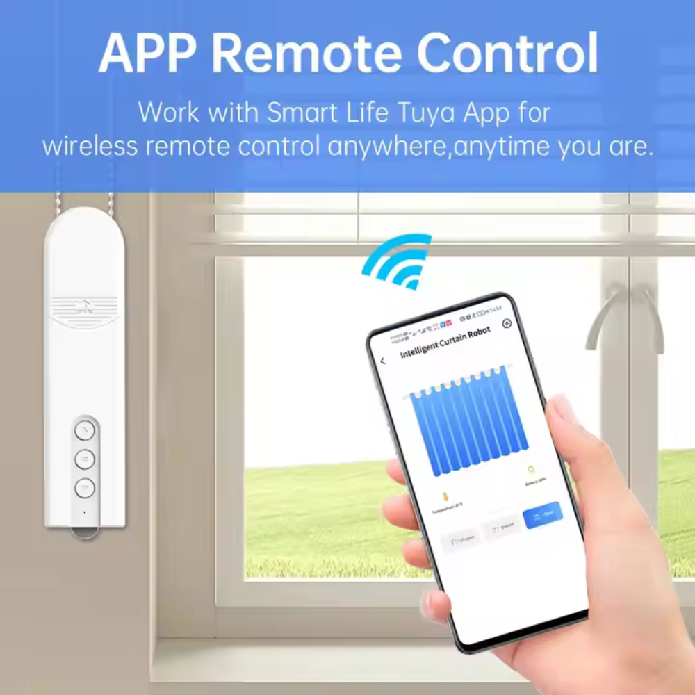 حوّل الستائر التقليدية أو البلايندات إلى ستائر ذكية بكل سهولة مع محرك الستائر الذكي القابل لإعادة الشحن. يوفر هذا المحرك تجربة تحكم متكاملة باستخدام تطبيق Tuya Smart أو Smart Life، ويدعم الأوامر الصوتية من Alexa وGoogle Assistant، بالإضافة إلى جهاز تحكم عن بعد مرفق.