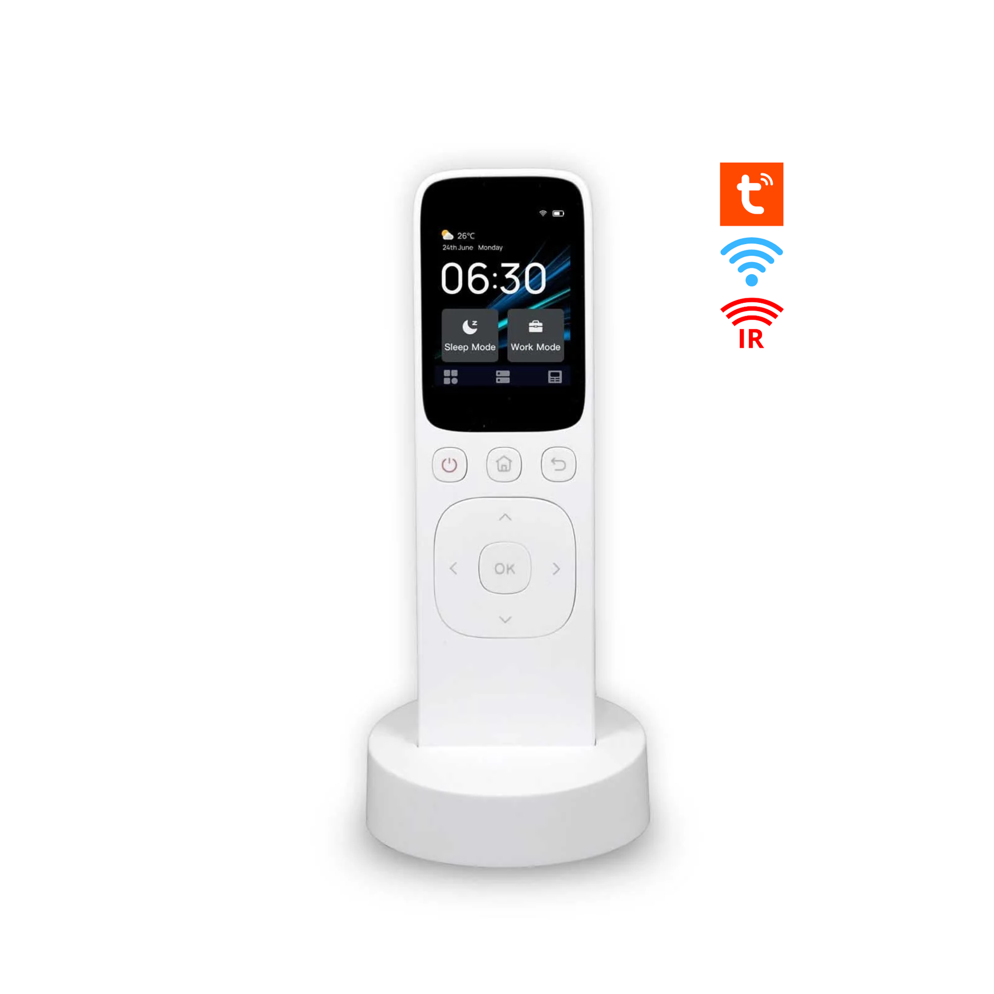 ضبط المكيّف والتلفاز عبر IR، فتح/إغلاق الستائر الذكية، تعتيم الإضاءة أو تغيير الألوان، وتفعيل مشاهد مسبقة الإعداد بضغطة واحدة؛ لتجربة منزل ذكي أكثر سلاسة وراحة يومية.
