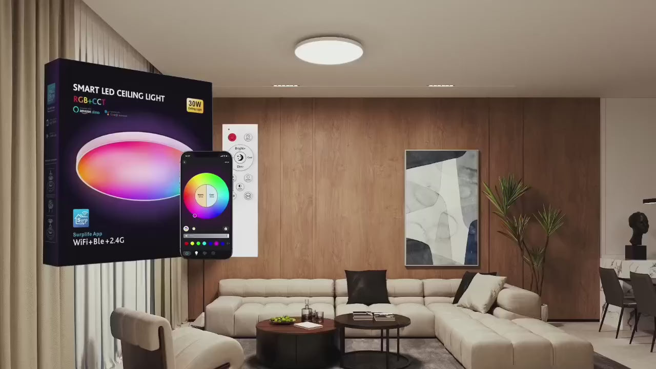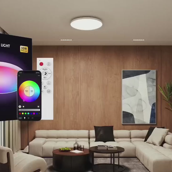 مصباح السقف LED الذكي بقطر 30 سم وقوة 24 واط يجمع بين التصميم النحيف والوظائف الذكية المتقدمة، ويوفر إضاءة مزدوجة: