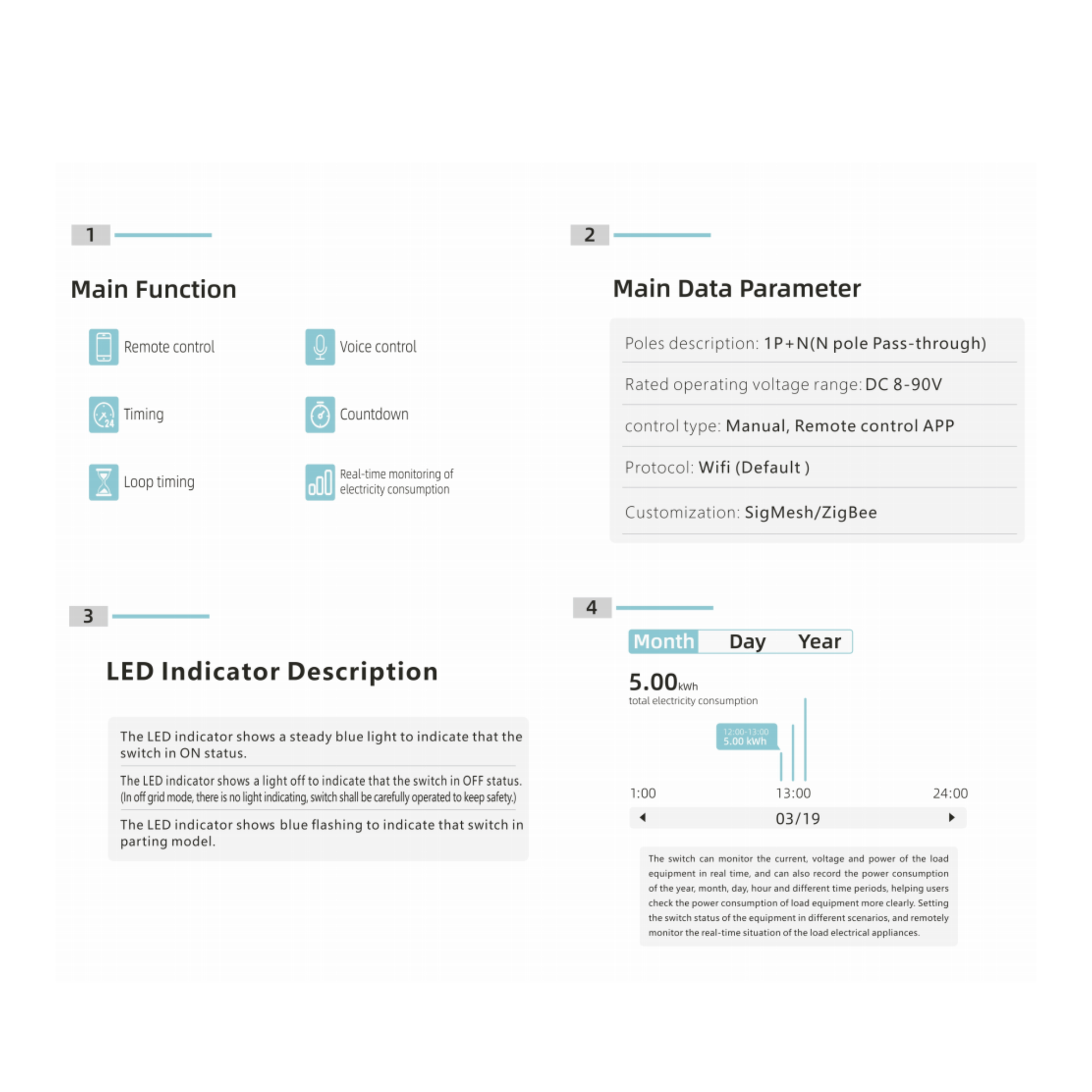 - قاطع/سويتش ذكي DC Wi-Fi على سكة DIN