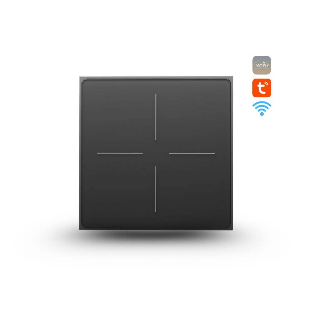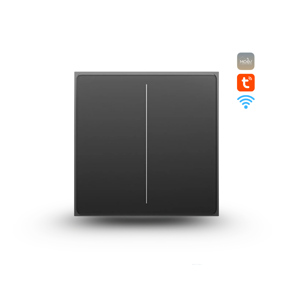 واجهة لمس كاملة عالية الدقة مع زجاج AG مضاد للتوهج والبصمات، وإضاءة خلفية ناعمة، وأربع مستويات ارتجاج لمسي تؤكد كل لمسة. يعمل عبر Wi-Fi 2.4GHz ويتكامل مع تطبيقات MOES وTuya Smart وSmart Life، كما يدعم أوامر الصوت مع Amazon Alexa وGoogle Assistant.