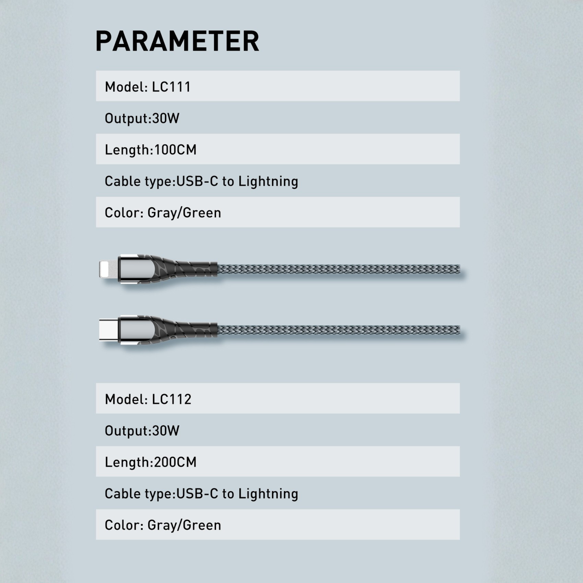 كيبل شحن سريع PD 30W USB-C إلى Lightning – طراز LC111 / LC112