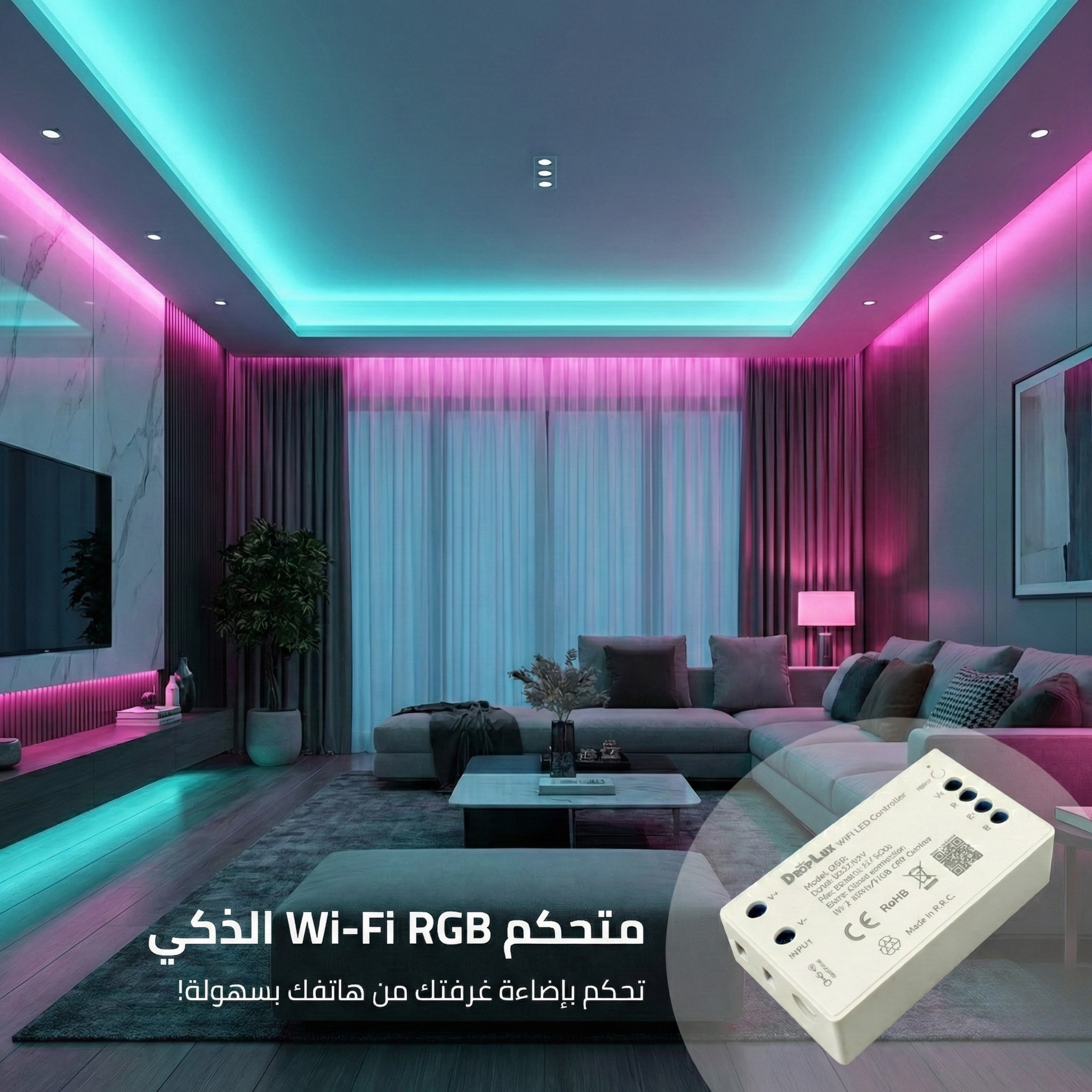 درايفر/متحكم RGB ذكي 12–24V (Wi-Fi Tuya) — تحكم احترافي بالإضاءة… بدون تغيير الشريط