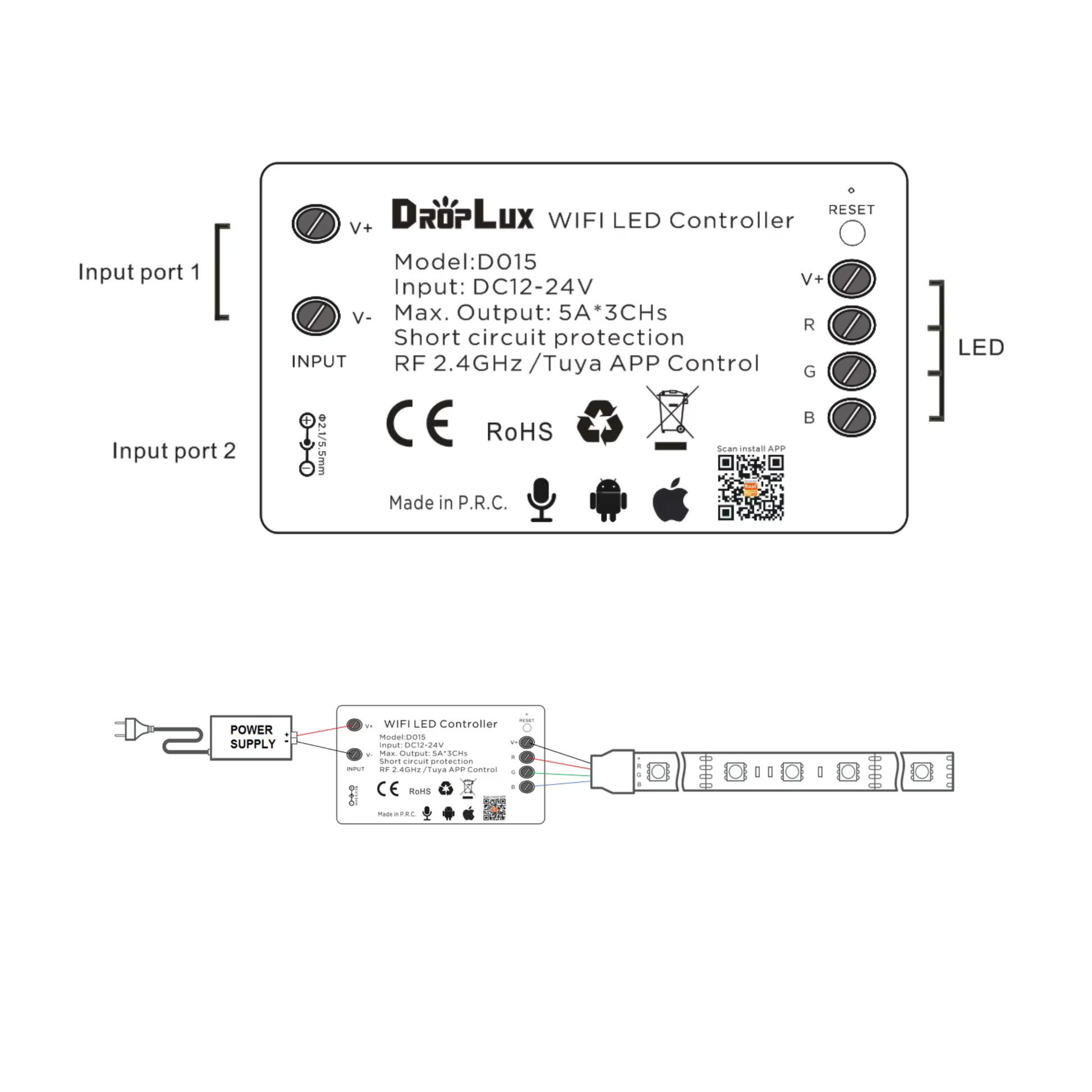Wi-Fi Tuya RGB 3 Channels 12–24V DC Memory + حماية قصر