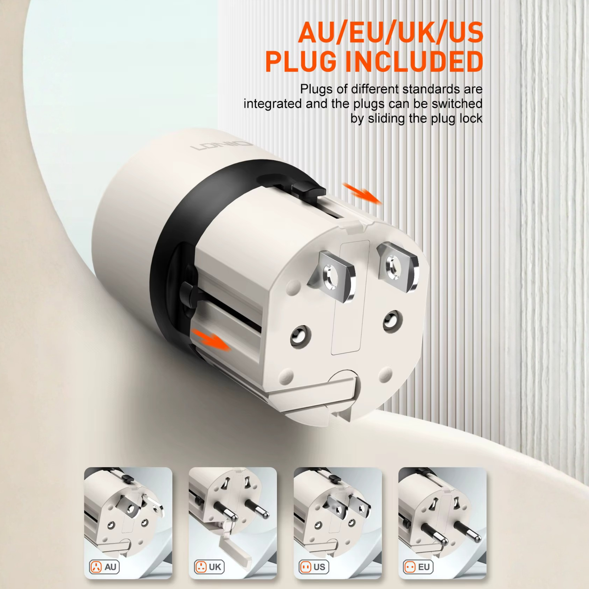 - أربعة أنواع مقابس مدمجة في شاحن واحد: EU / US / UK / AU للاستخدام في معظم دول العالم.