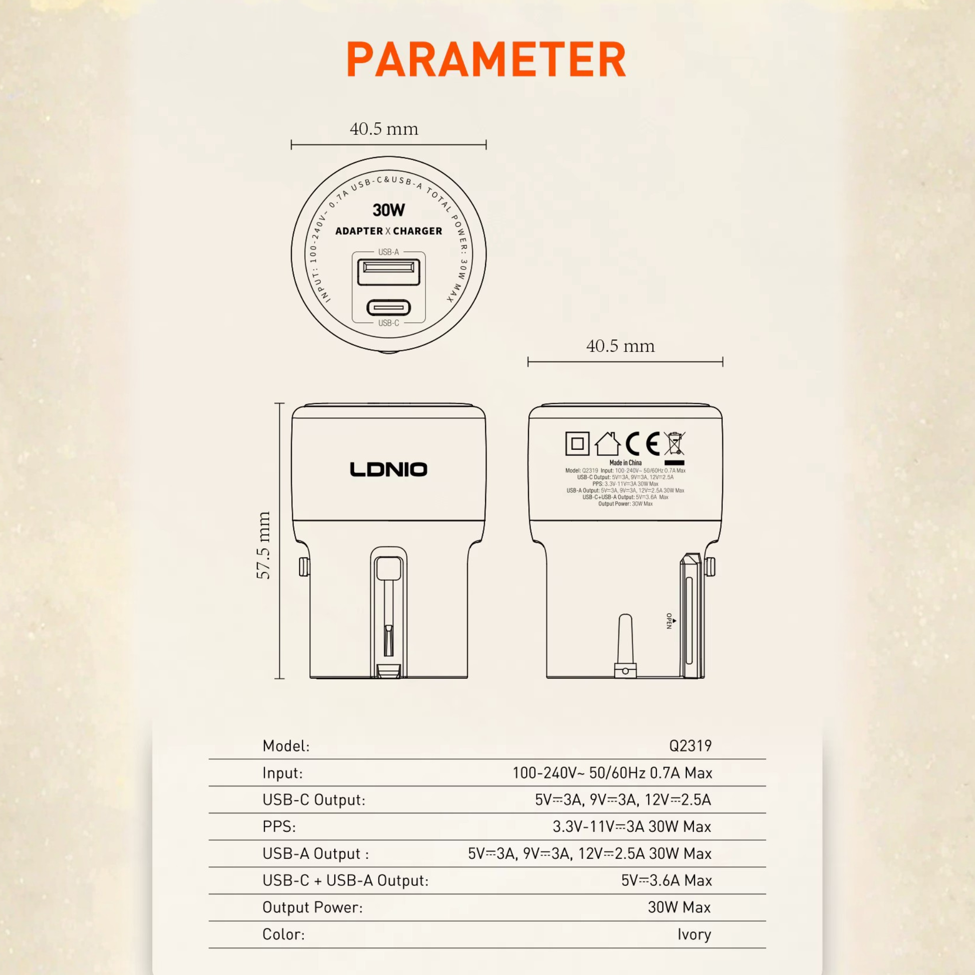 - قدرة شحن قصوى 30 واط تناسب أغلب الهواتف والأجهزة اللوحية الحديثة.
