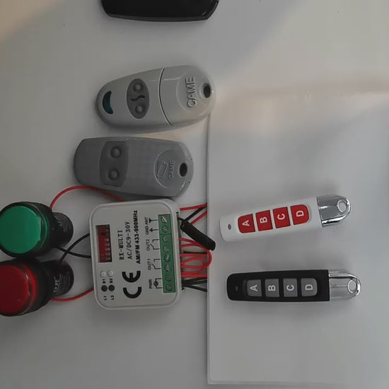 تريد نسخة إضافية من ريموت البوابة/الكراج أو ريموت احتياطي للبيت؟ هذا مستنسخ ريموت RF433 يسمح لك بنسخ إشارات ريموتات محددة وتخزينها داخل جهاز واحد يحتوي 4 أزرار (A/B/C/D) — كل زر أمر مستقل.