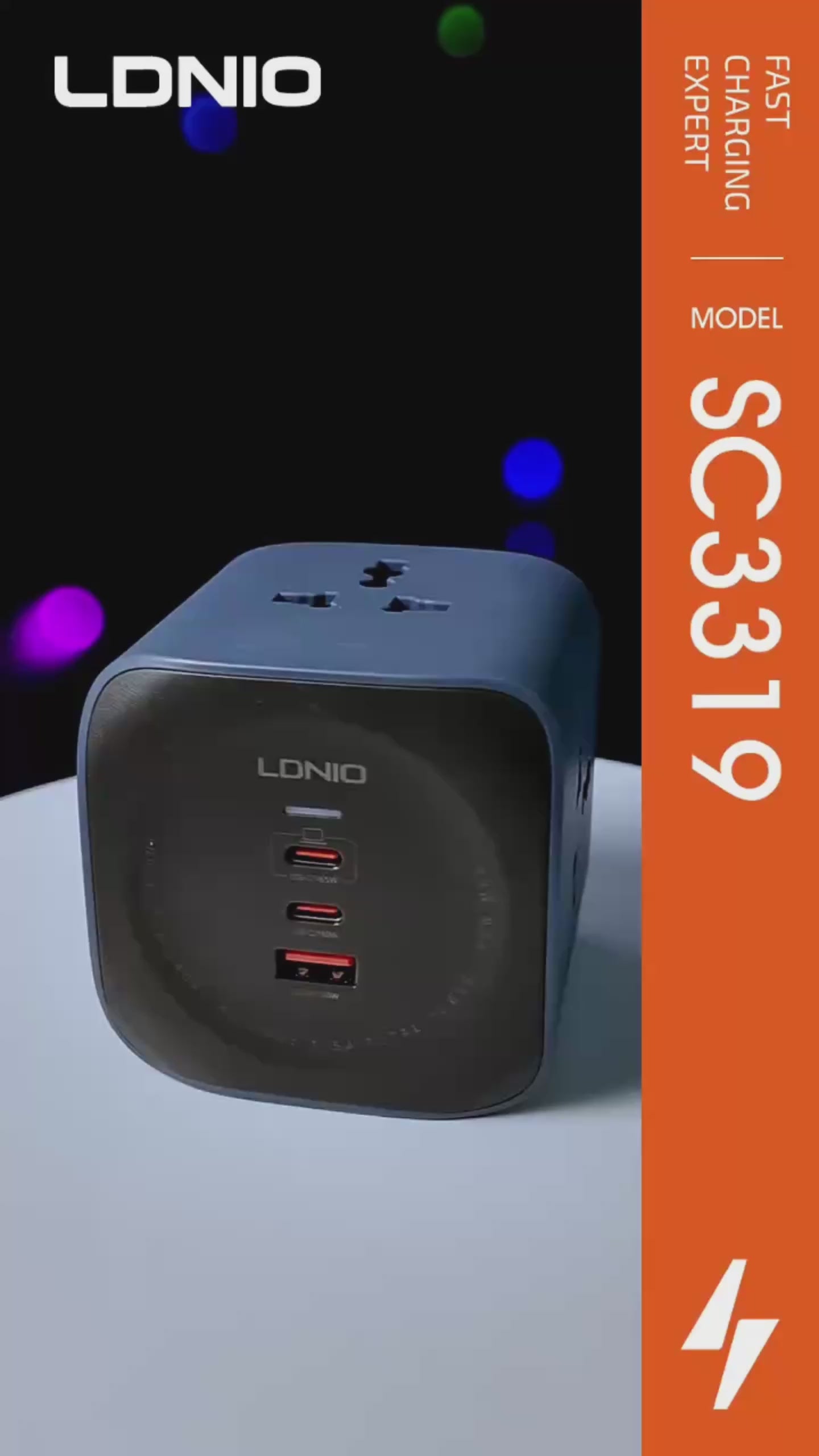- تصميم مكعب ذكي: توزيع المنافذ على ثلاثة جوانب لتقليل التداخل بين الشواحن الكبيرة والمحولات.