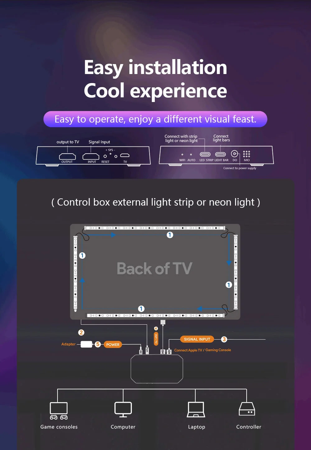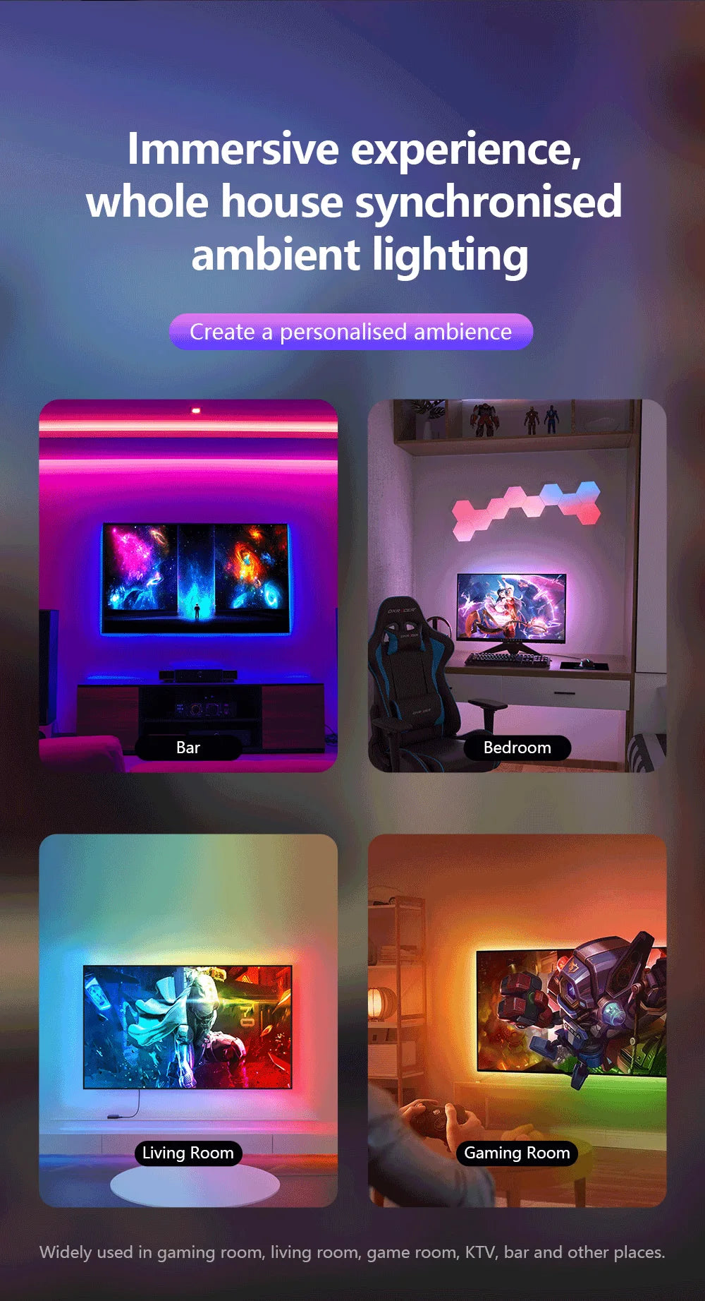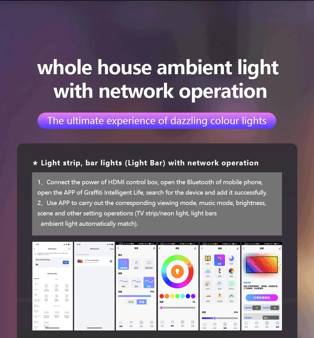 نظام الإضاءة الخلفية المتزامن الذكي للشاشات 55-65 بوصة تطبيق TUYA -سمارت لايف