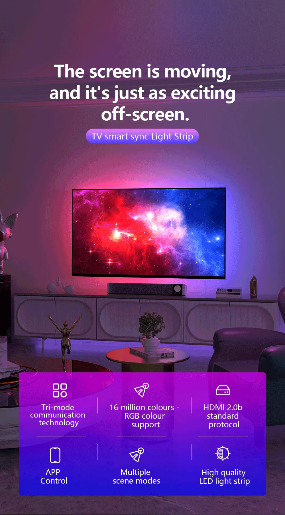 نظام الإضاءة الخلفية المتزامن الذكي للشاشات 55-65 بوصة