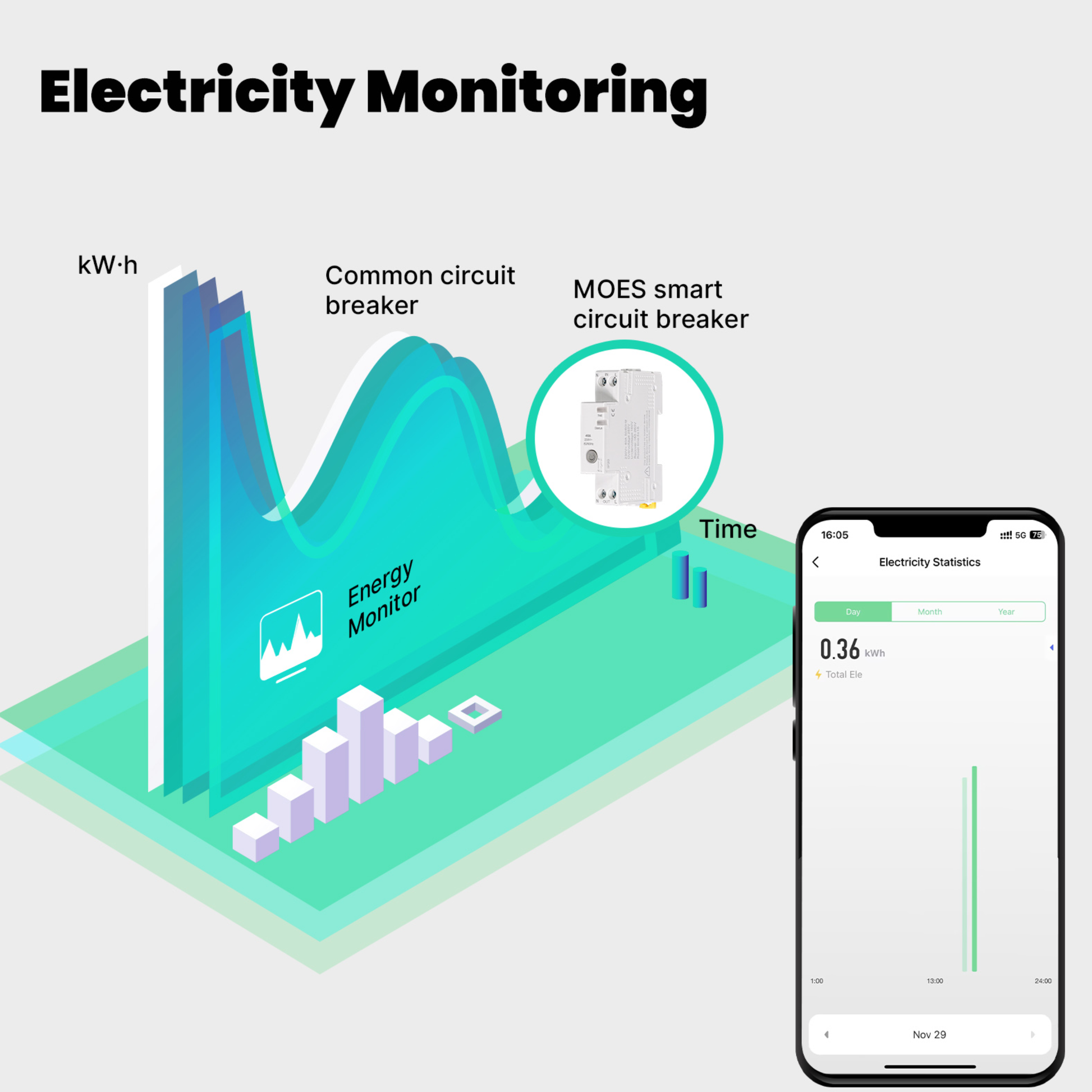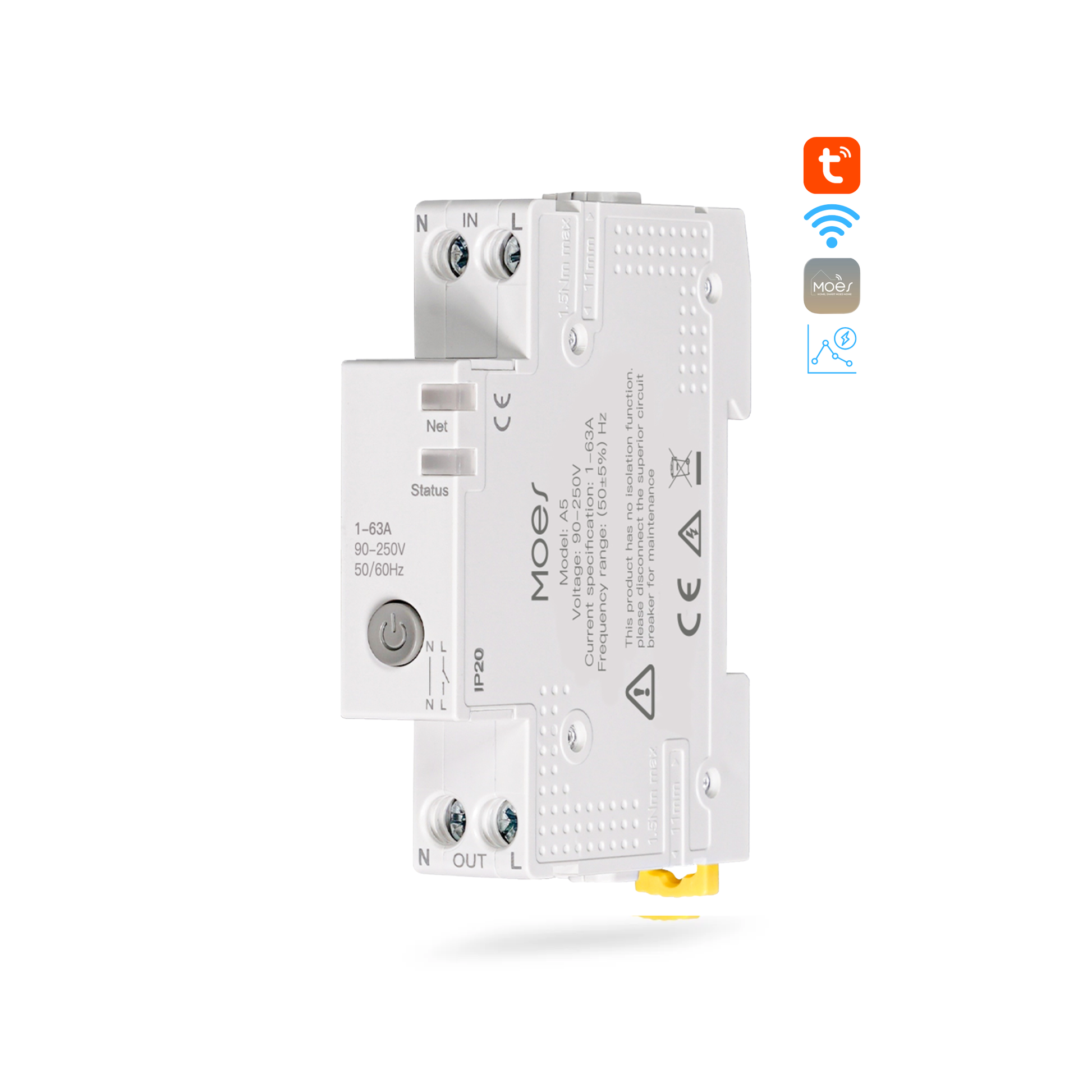 تحكم بالكهرباء من هاتفك، راقب الاستهلاك لحظيًا، واضبط حدود الإنذار للحماية — كل ذلك داخل لوحة التوزيع على سكة DIN.