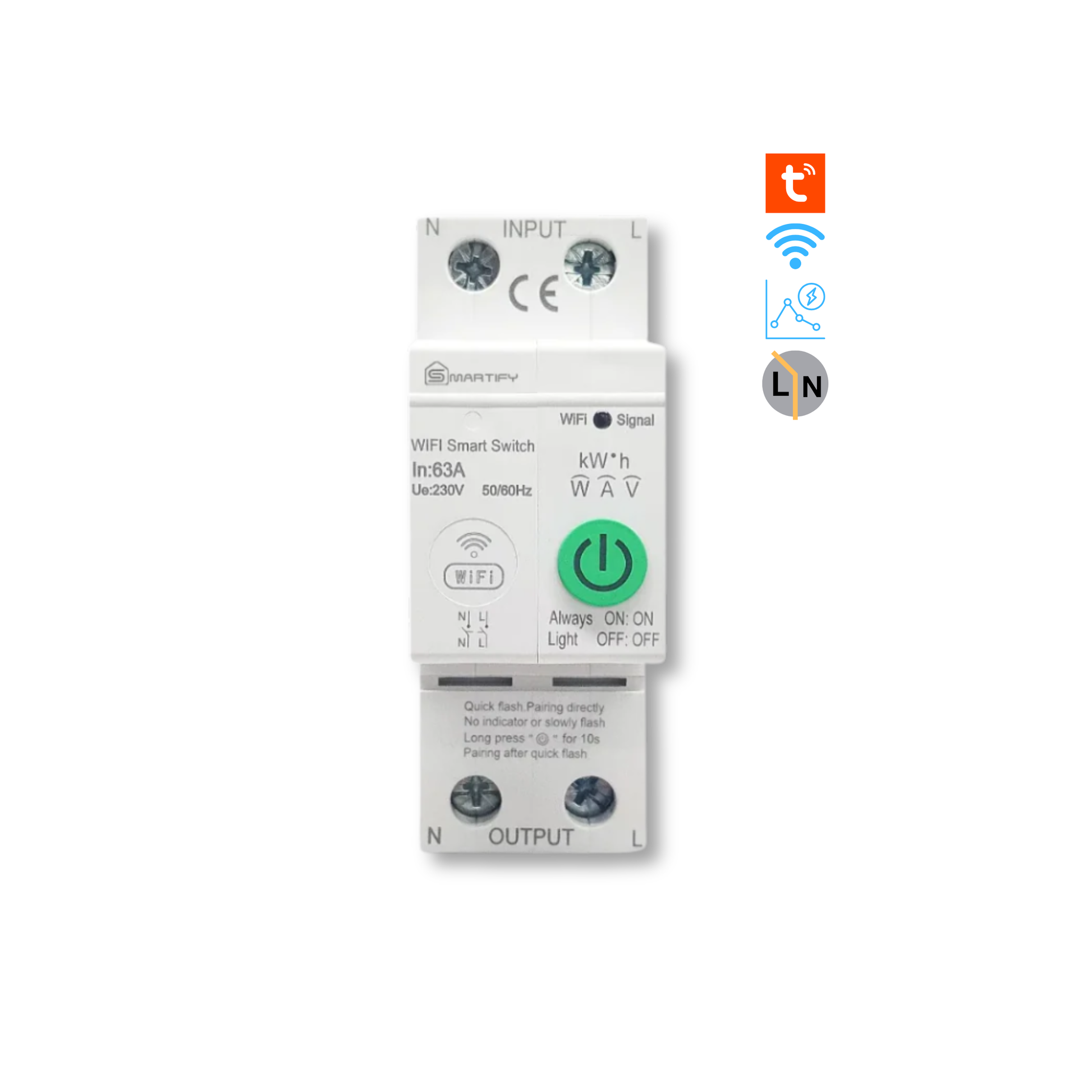 قاطع ذكي 63 أمبير يقطع بارد يعمل مع Tuya وSmart Life. تحكم عن بُعد، حماية كهربائية متقدمة