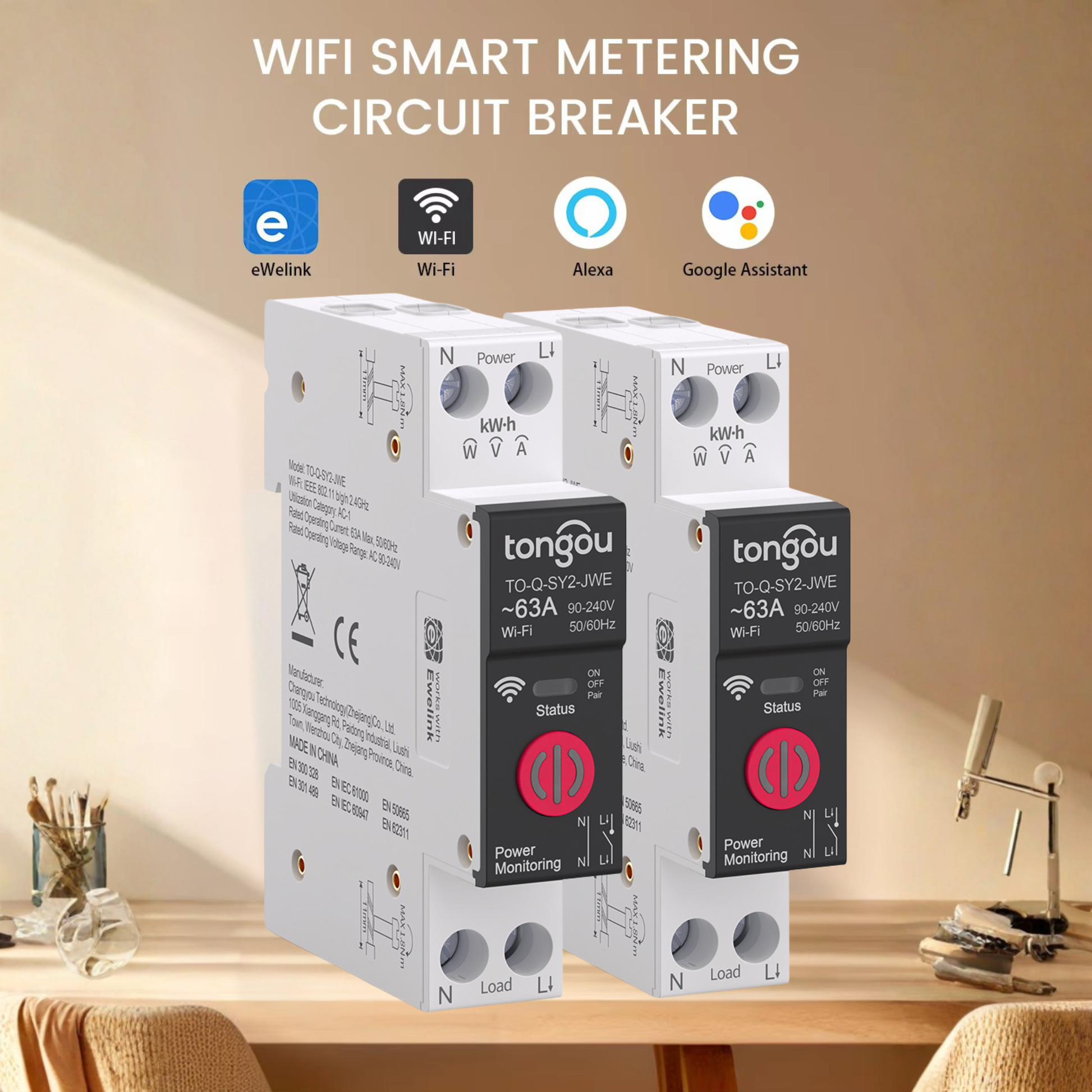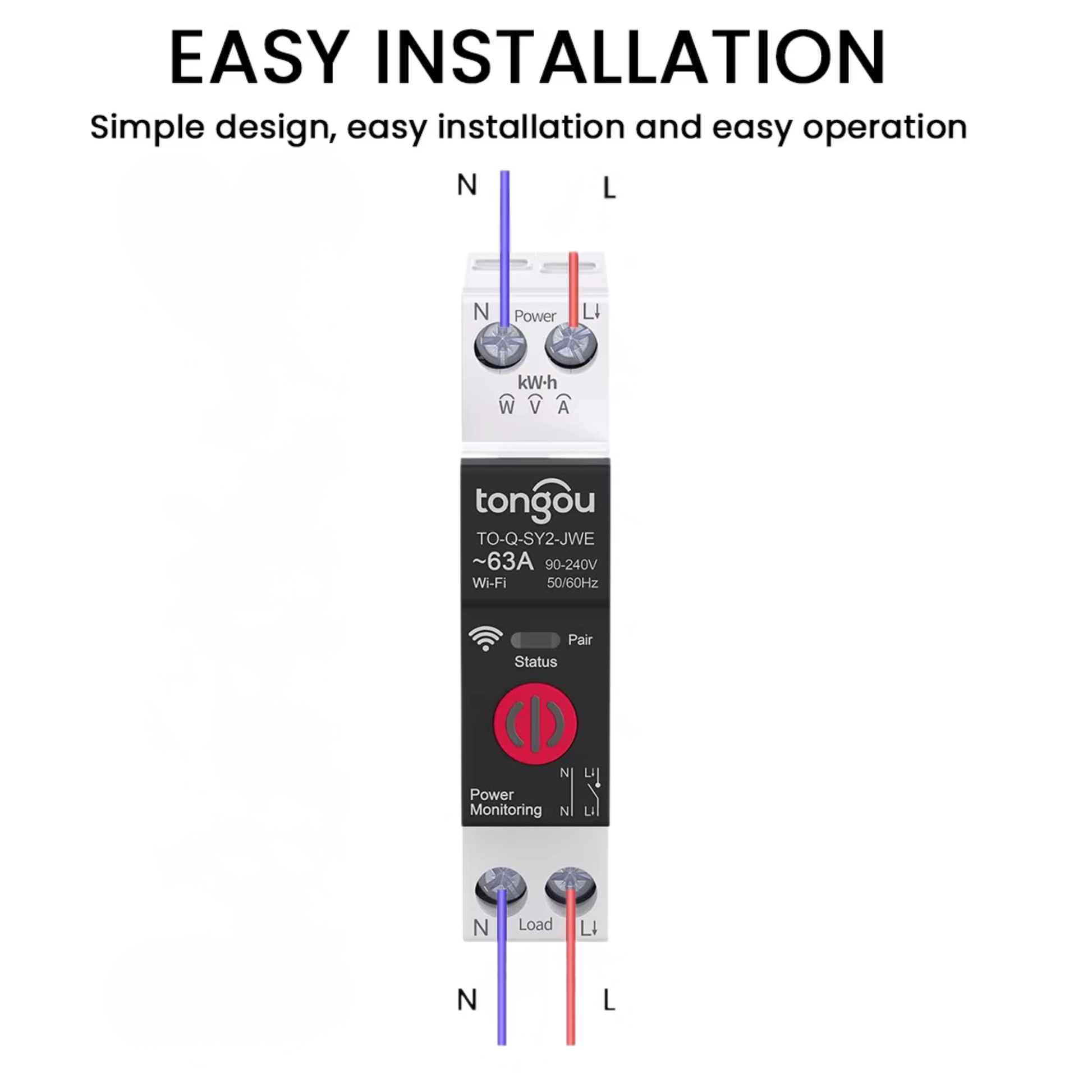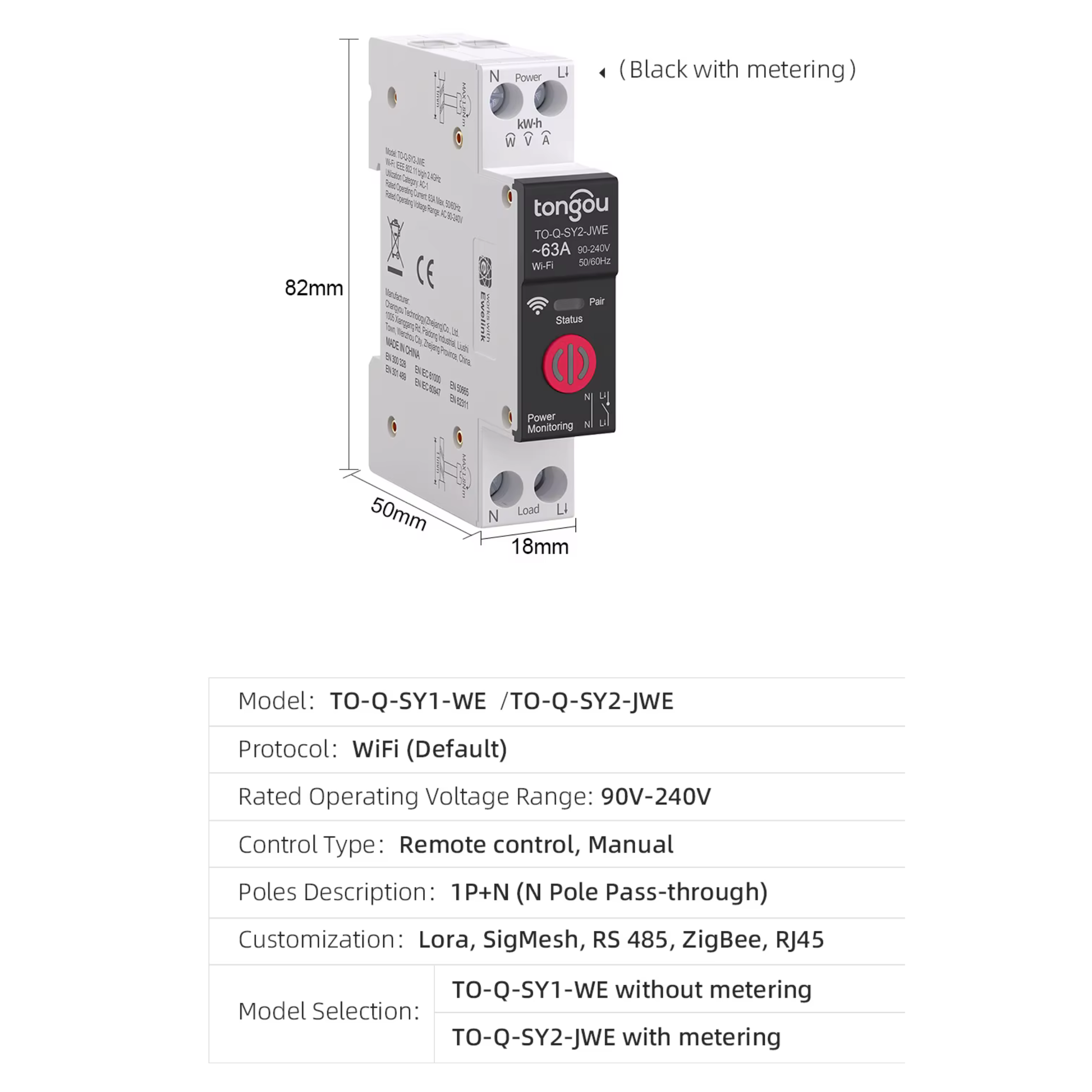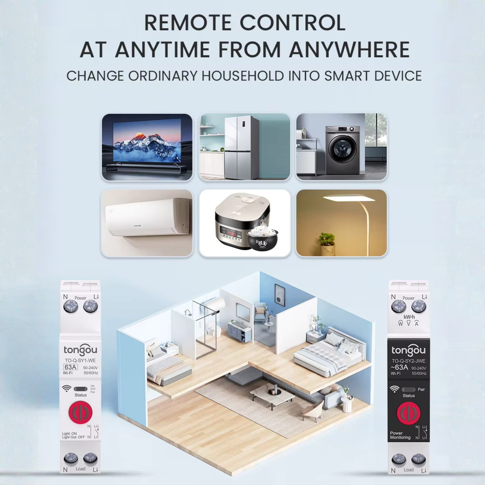 مفتاح ذكي Wi-Fi على سكة DIN (1P+N) حتى 63A – موديل TO-Q-SY2-JWE
