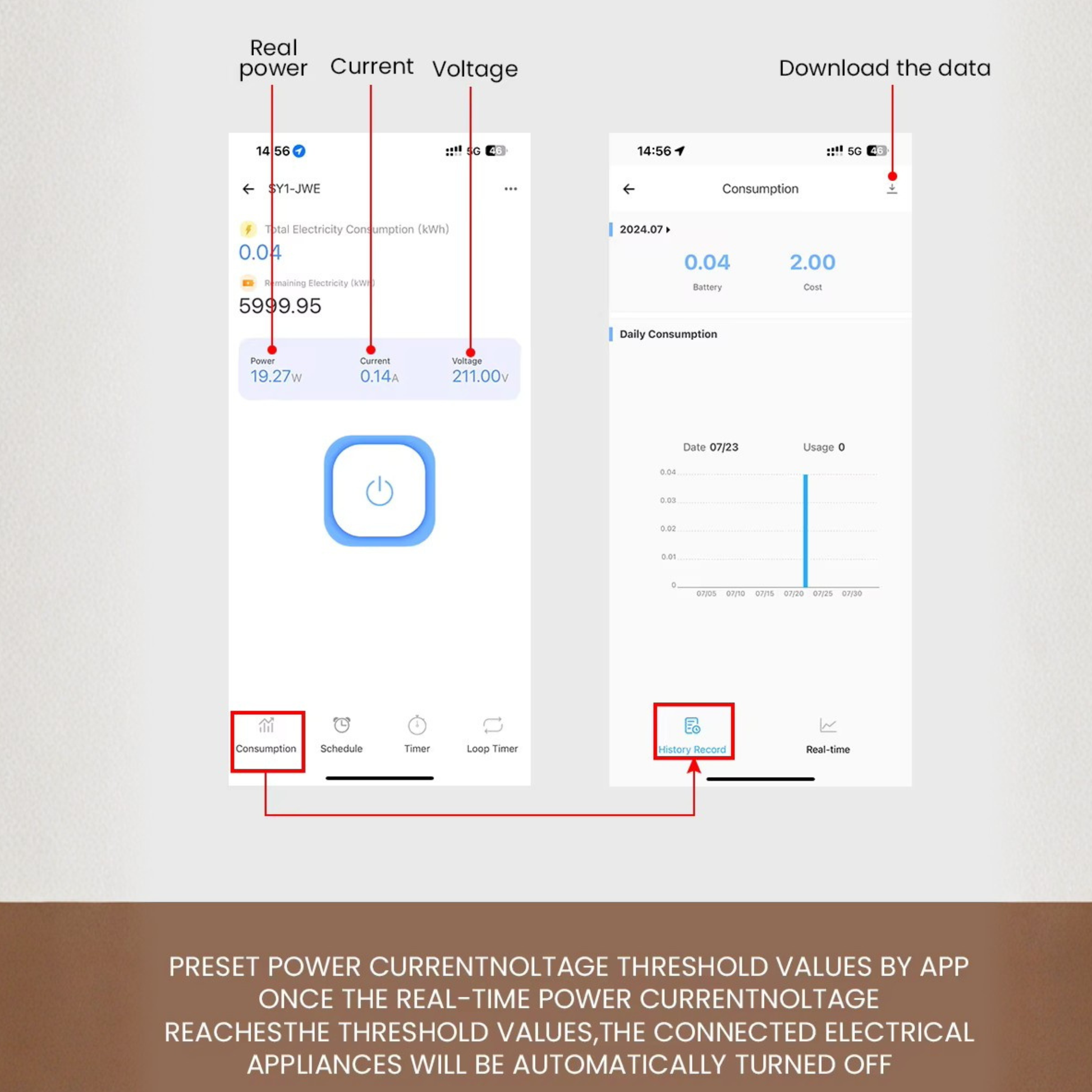 - قياس الاستهلاك: عرض وتتبع التيار/الفولت/القدرة مع سجلات استهلاك آنية وتاريخية.