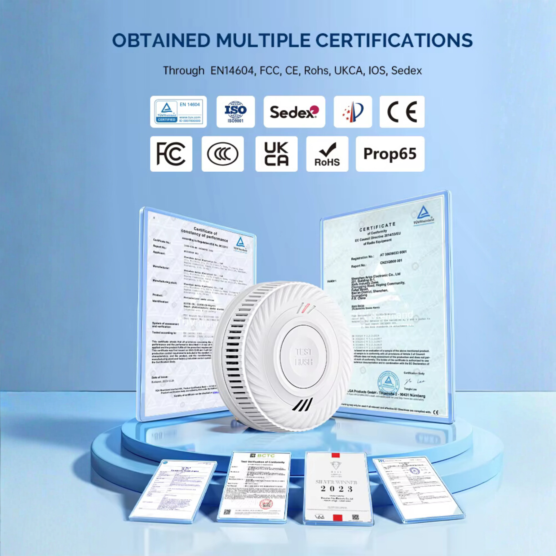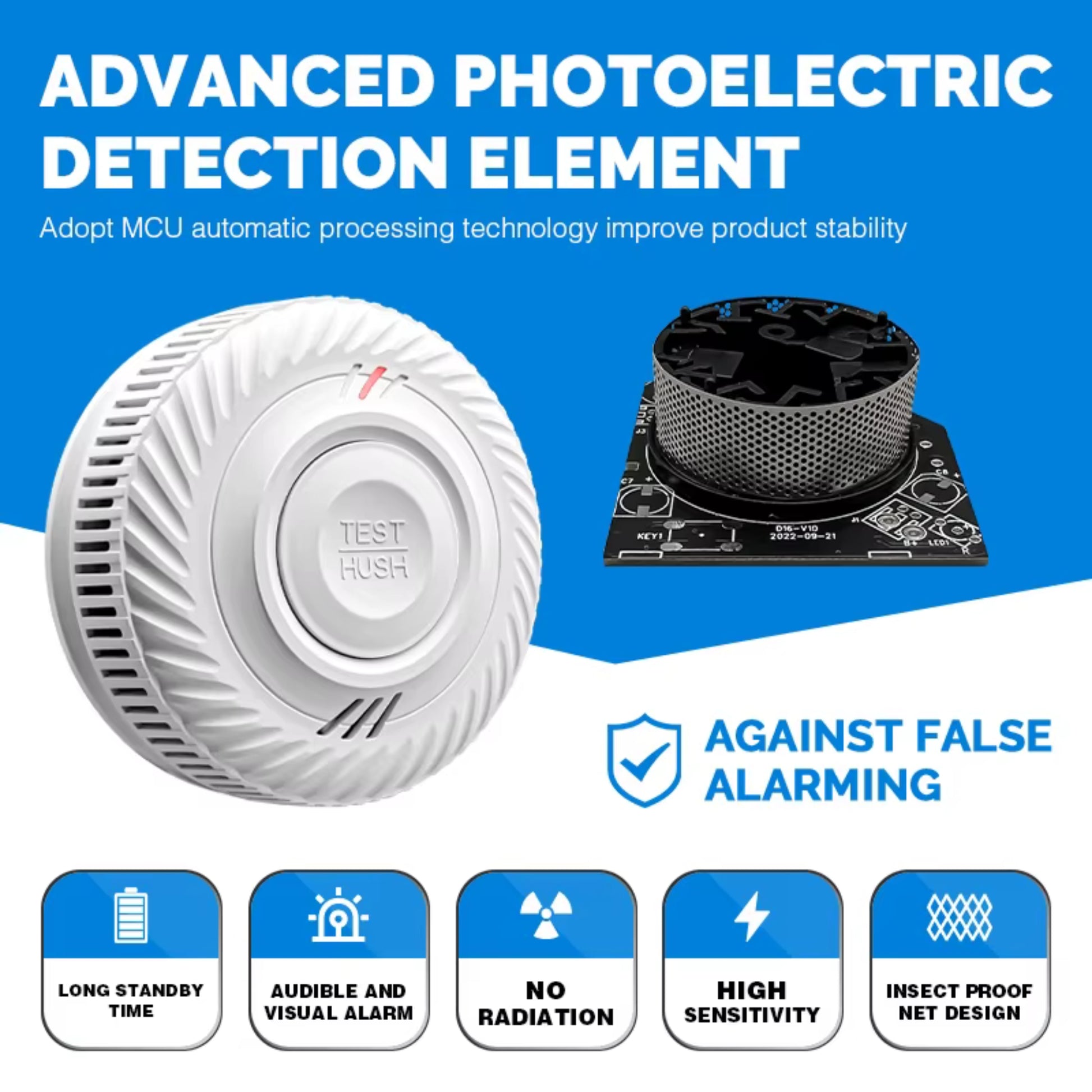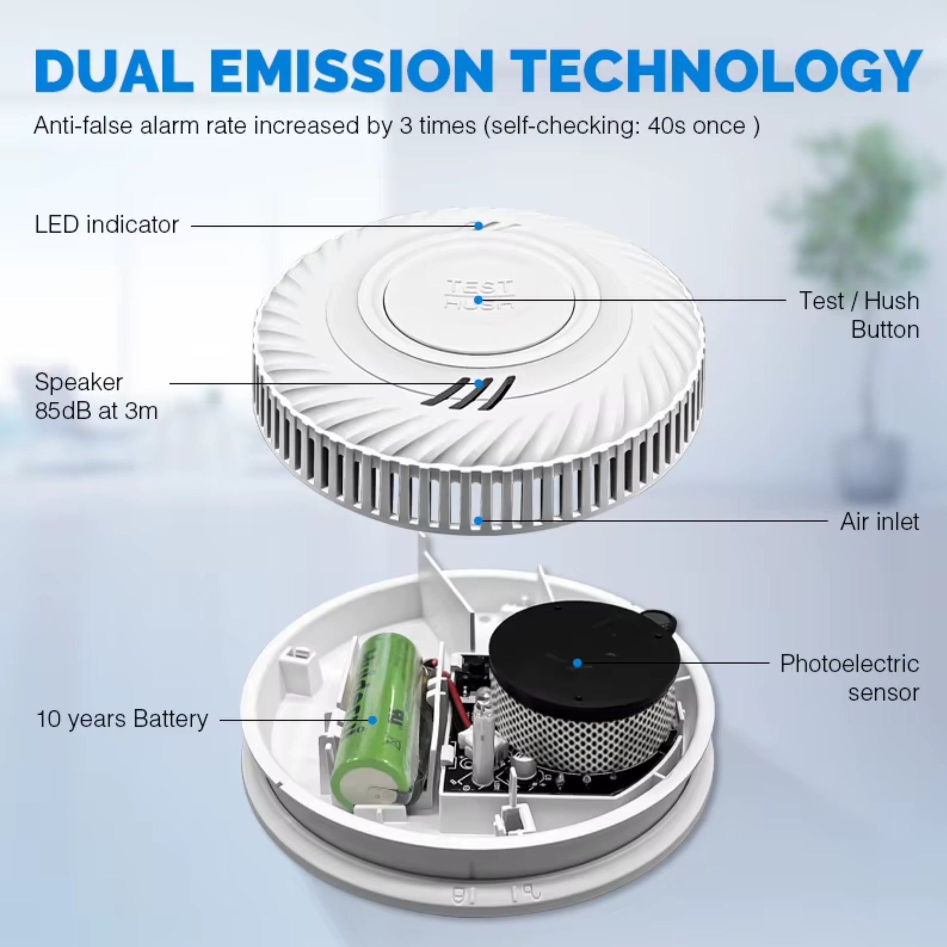 ارفع مستوى الأمان في منزلك أو مكتبك مع كاشف الدخان الذكي بتقنية WiFi المعتمد على المستشعر الفوتوإلكتروني بالأشعة تحت الحمراء لاكتشاف الدخان مبكرًا، مع إنذار محلي قوي وإشعارات فورية على الهاتف عبر تطبيقي Tuya وSmart Life. يعمل ببطارية ليثيوم CR17450 بعمر تصميمي يصل إلى 10 سنوات ليمنحك راحة بال طويلة دون صيانة متكررة.