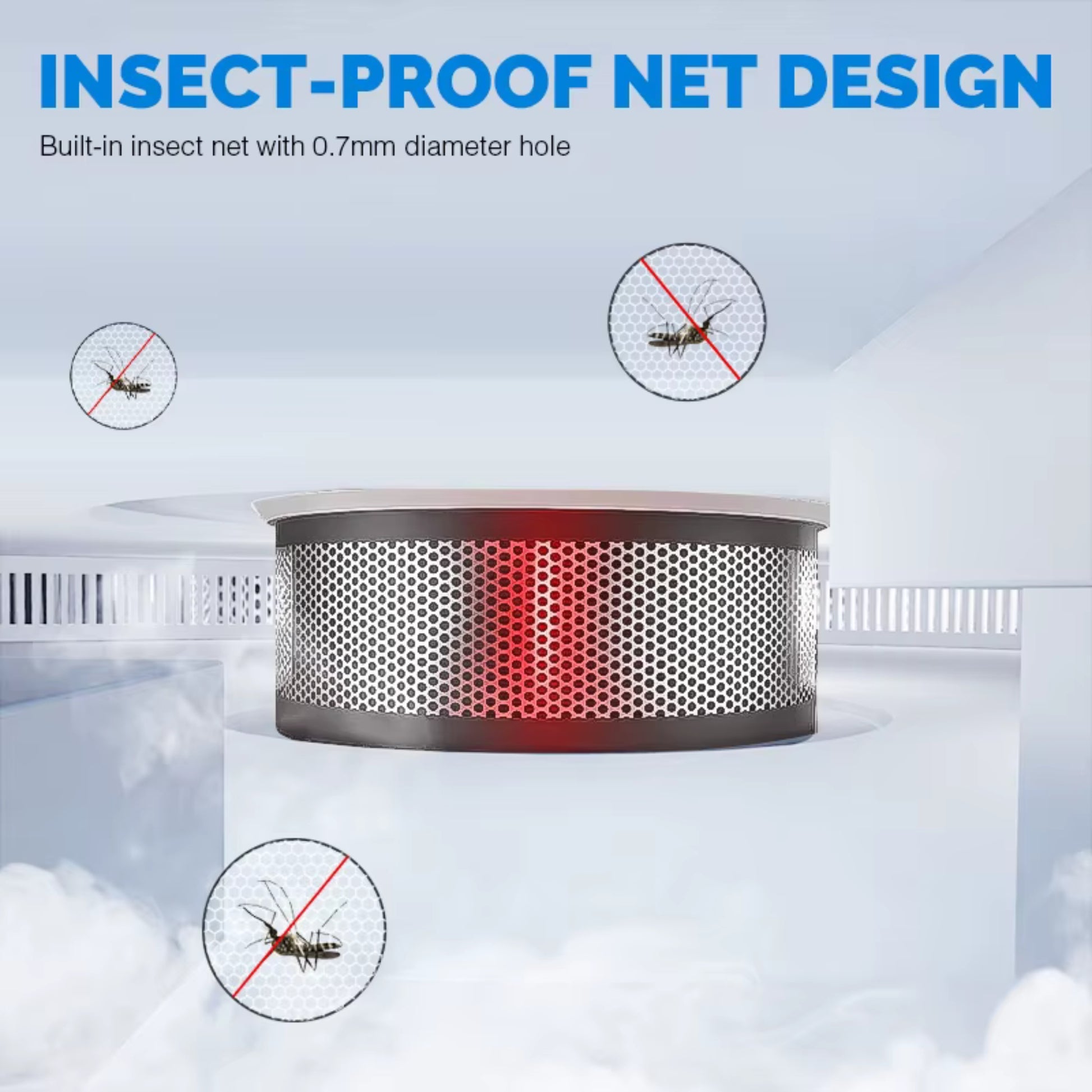 - حساس دخان فوتوإلكتروني دقيق مع خوارزمية مرشِّحة للإنذارات الكاذبة.