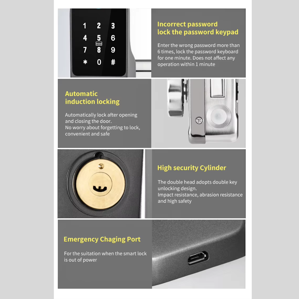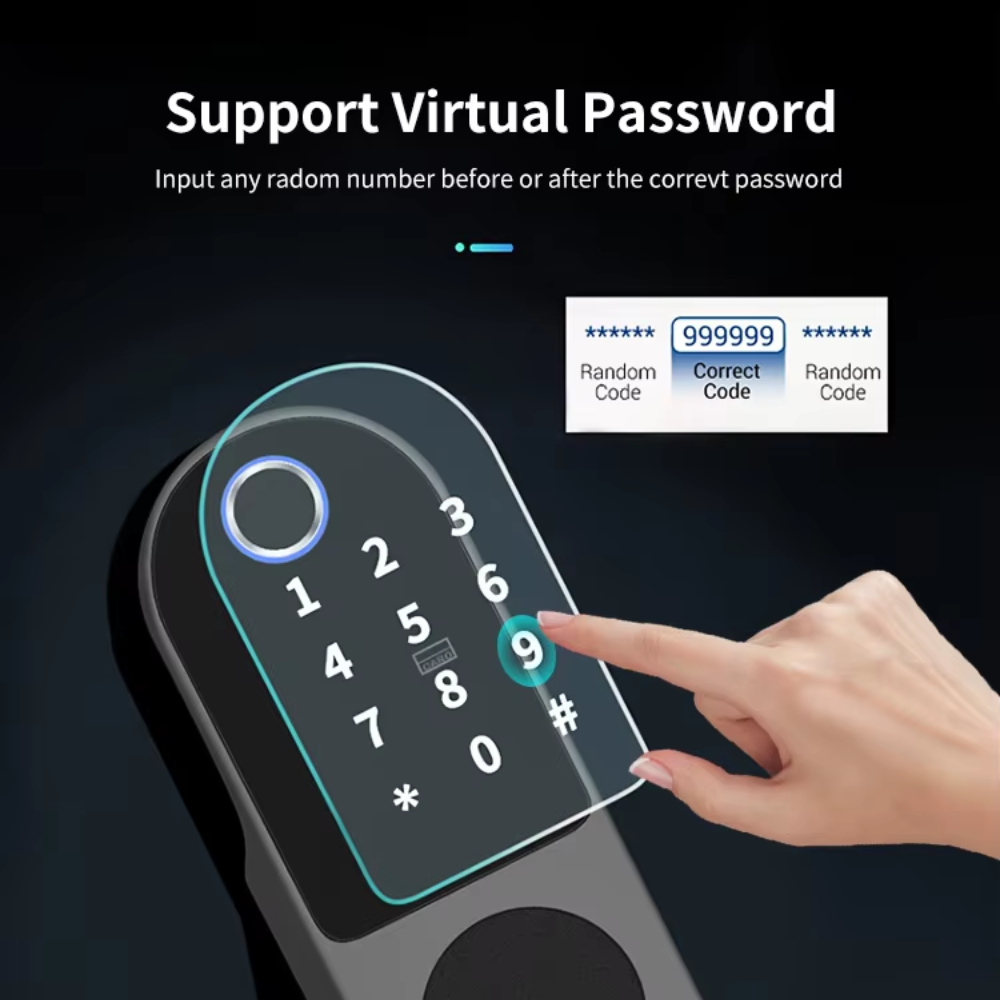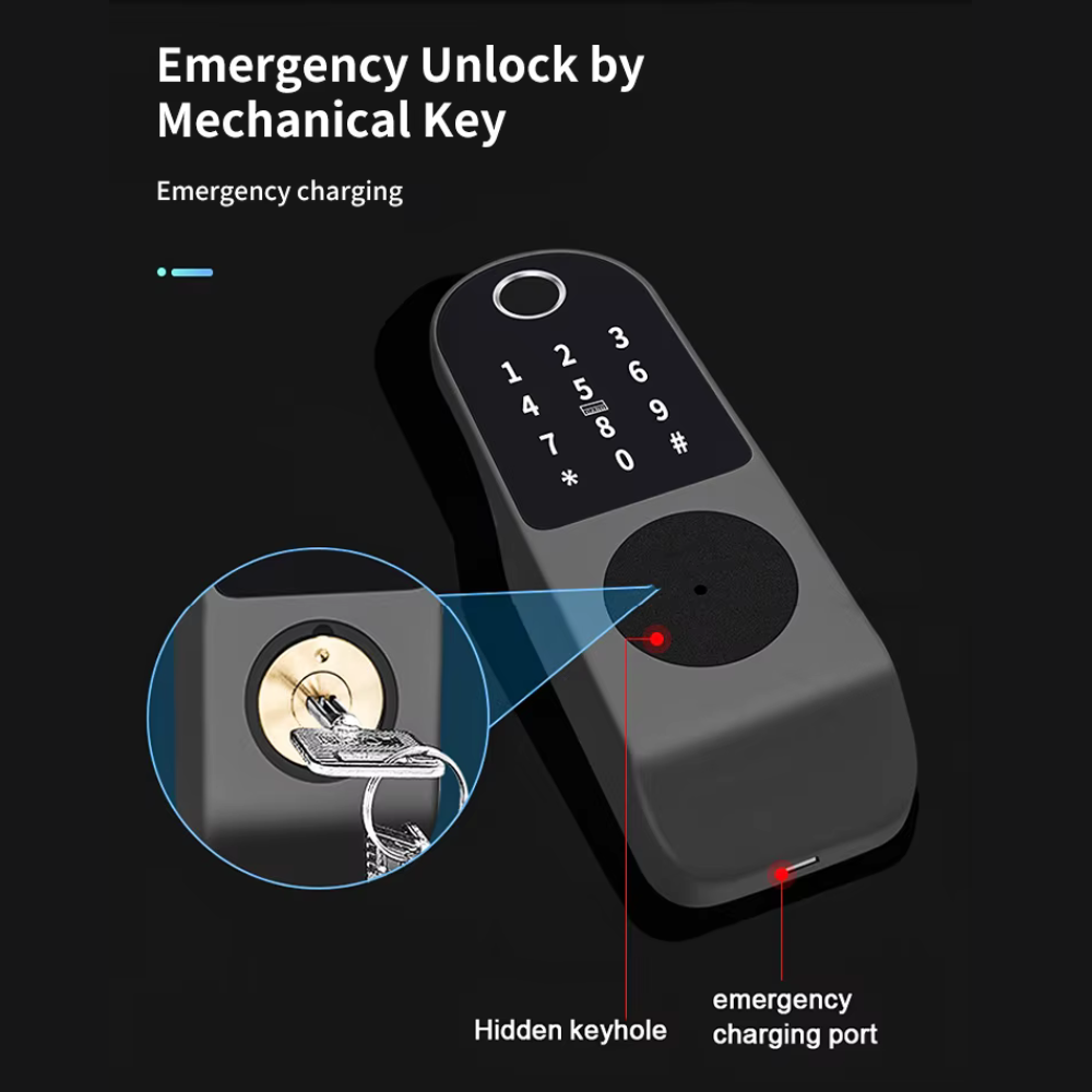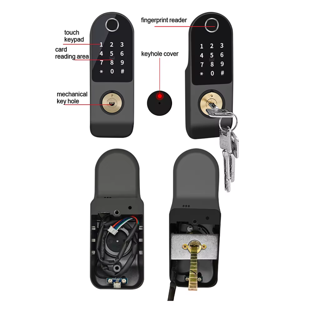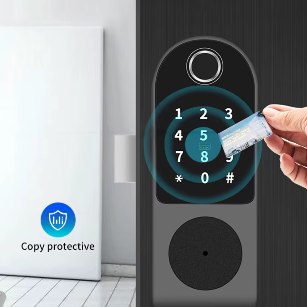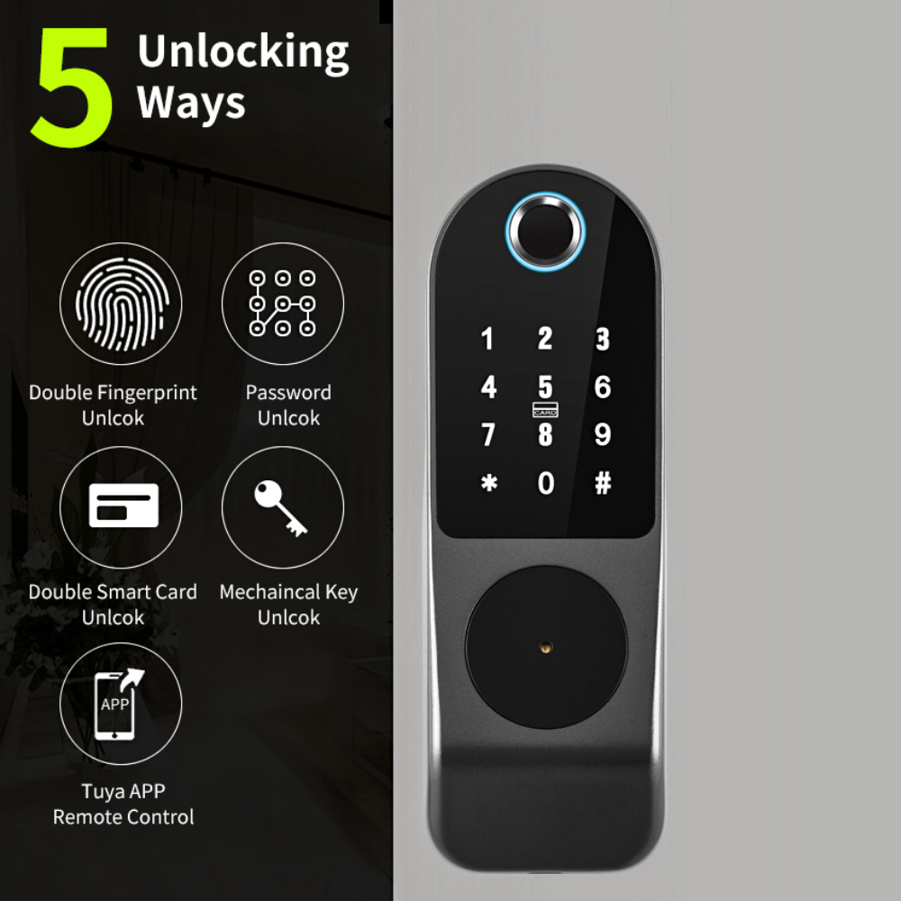 قفل ذكي متعدد الوظائف ببصمة الإصبع وكلمة المرور وتطبيق Tuya مع دعم البطاقة والمفتاح الميكانيكي