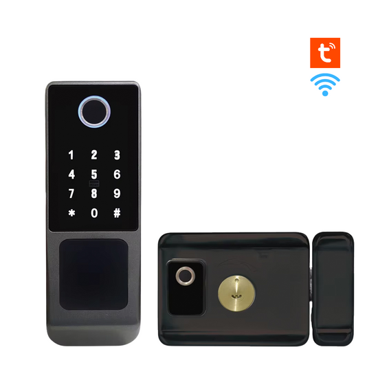 قفل باب خارجي ذكي دخول ذكي بصمه مزوجه( دخول وخروج ) باسورد وكارت نظام واي فاي من تويا