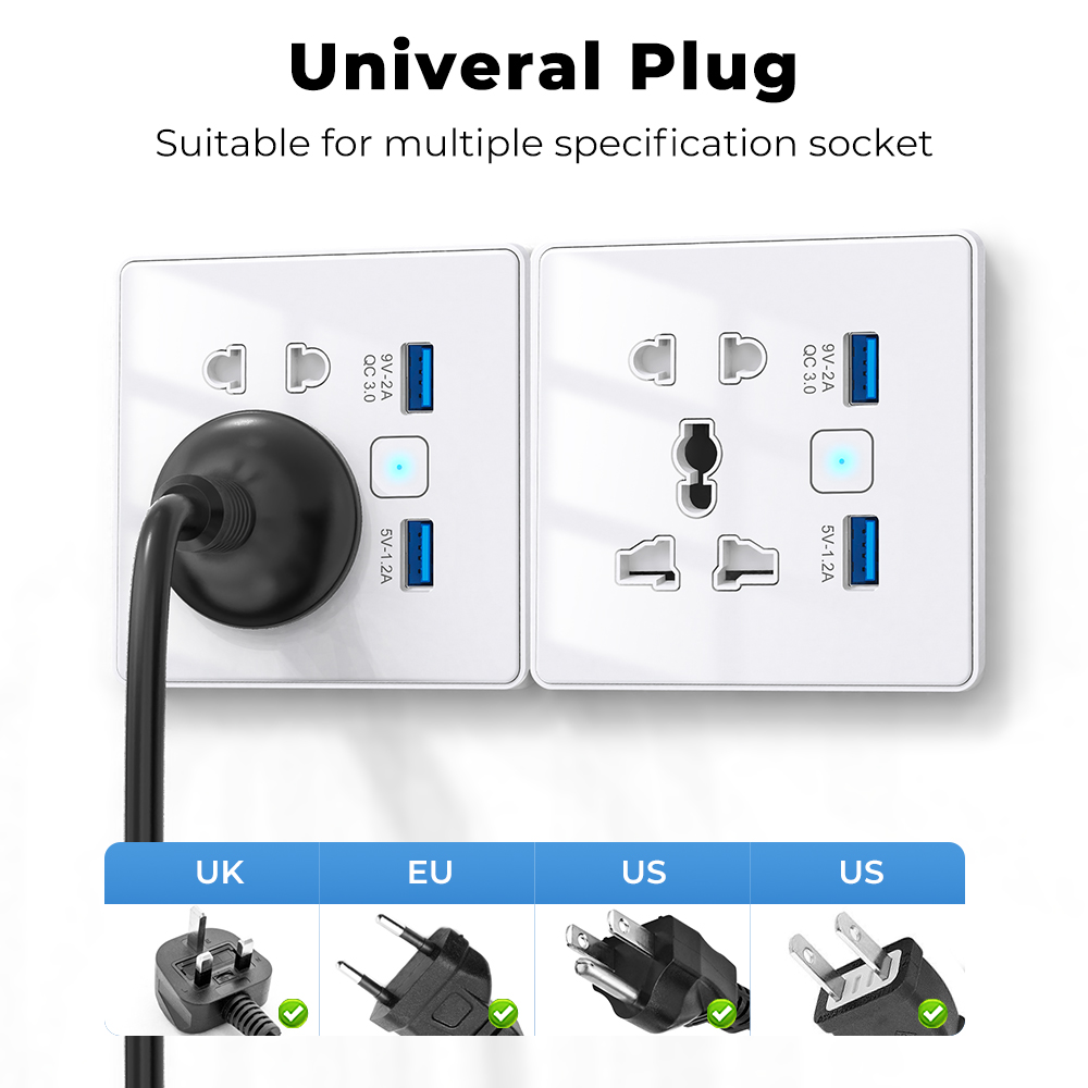- تصميم عالمي: يدعم مقابس UK وEU وUS وغيرها.