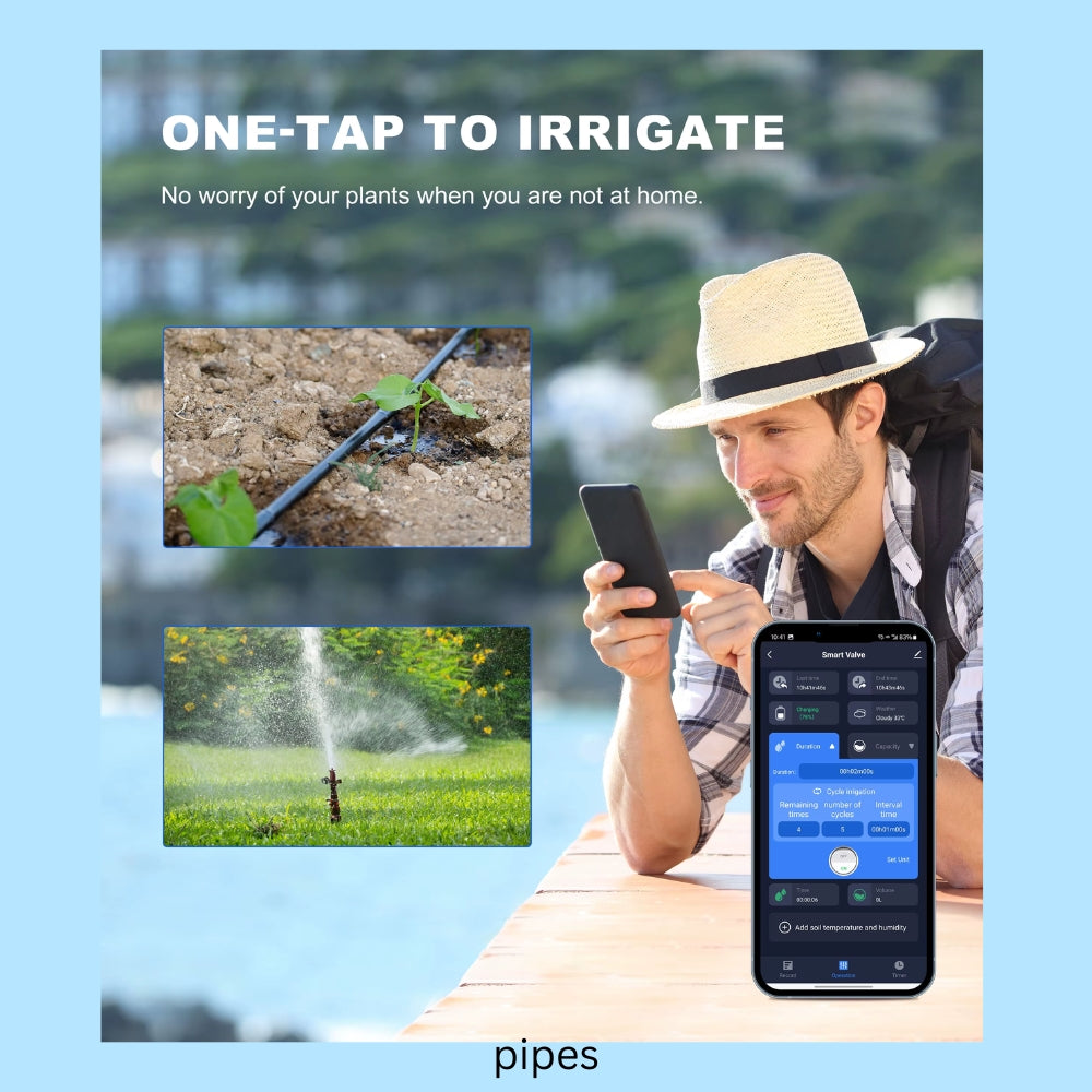 - تحكم عن بُعد عبر التطبيق: تشغيل/إيقاف وجدولة الري من أي مكان عبر تطبيق Tuya أو Smart Life.