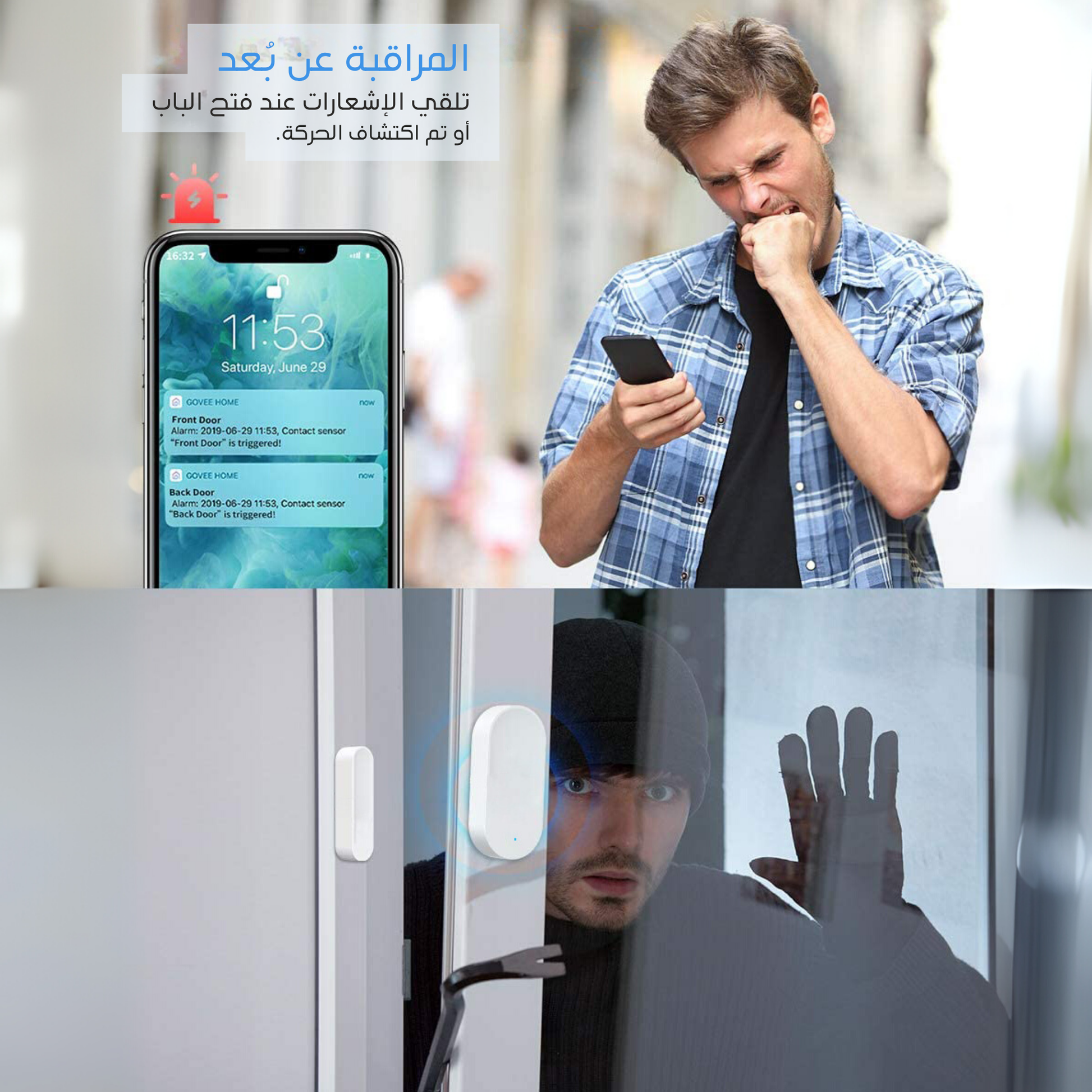- ارتباطات ذكية: اربطه مع الإضاءة أو الإنذار ليعمل تلقائيًا عند فتح الباب.