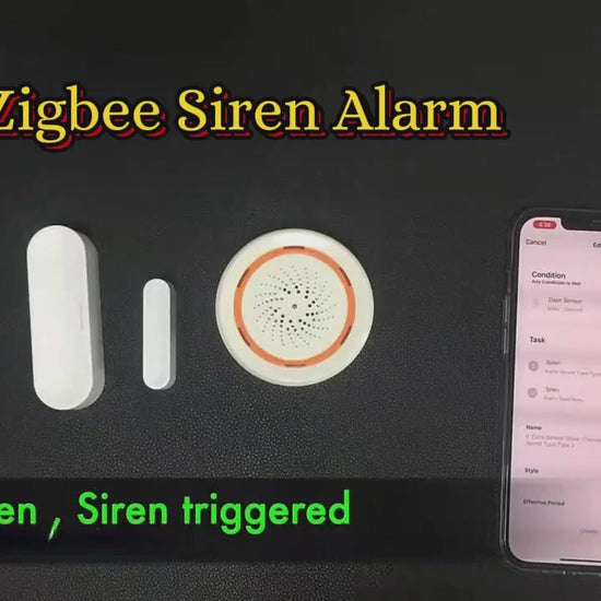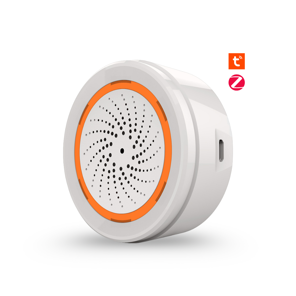 صافرة إنذار ذكية تدعم بروتوكول Zigbee 3.0، مصممة لتنبيهك فور حدوث أي طارئ، مع إمكانية التحكم بها عن بُعد عبر التطبيق ومشاركة التحكم مع عدة مستخدمين.