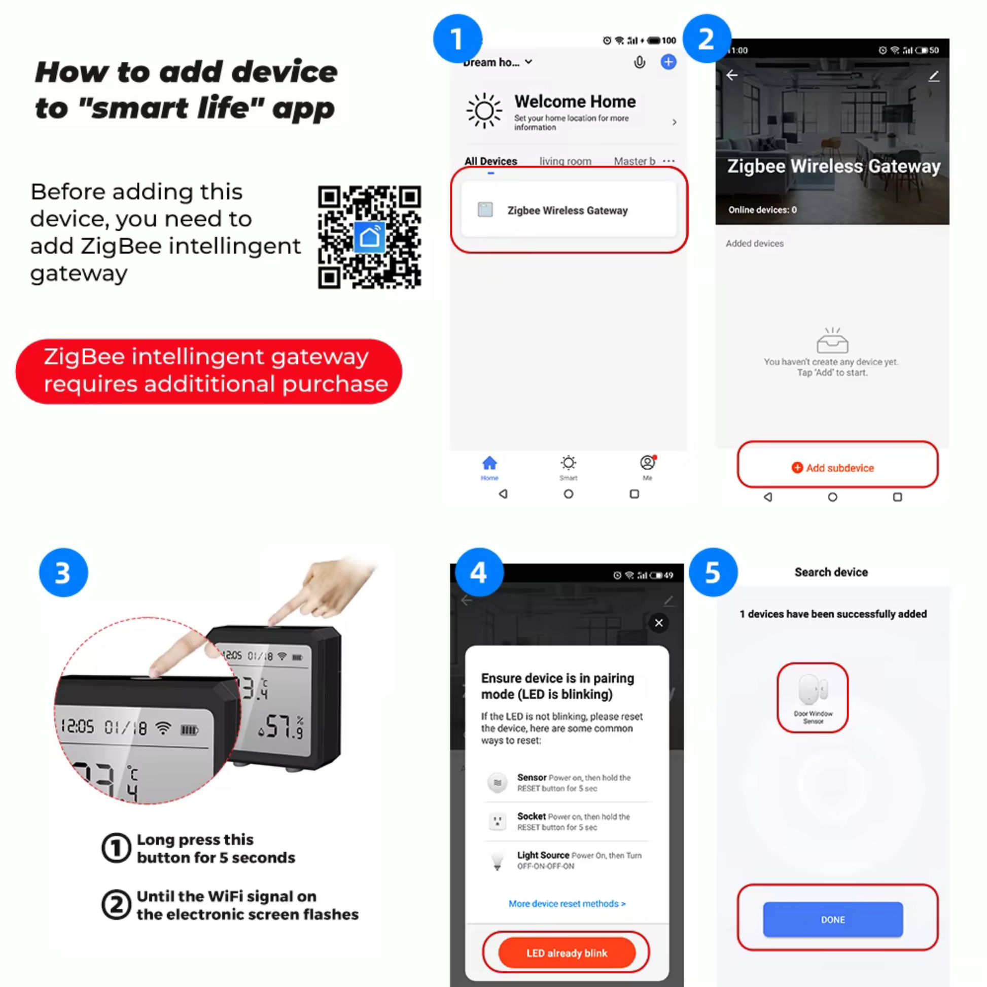 - ملاحظة: البطاريات (AAA) غير مرفقة، وبوابة ZigBee تُشترى بشكل منفصل إذا لم تكن لديك.