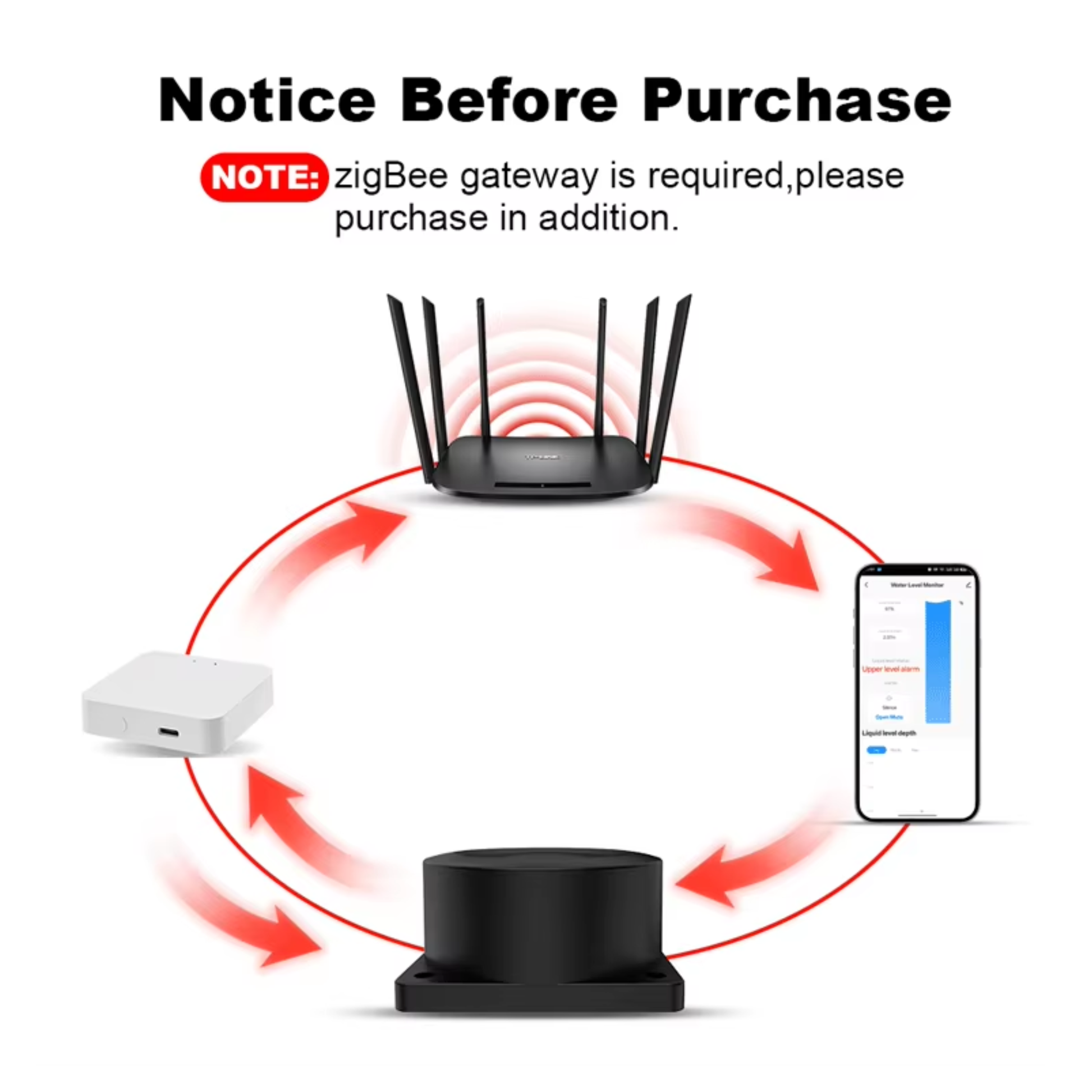 حساس مستوى السائل بالموجات فوق الصوتية Tuya Zigbee – مراقبة خزان الماء بدقة