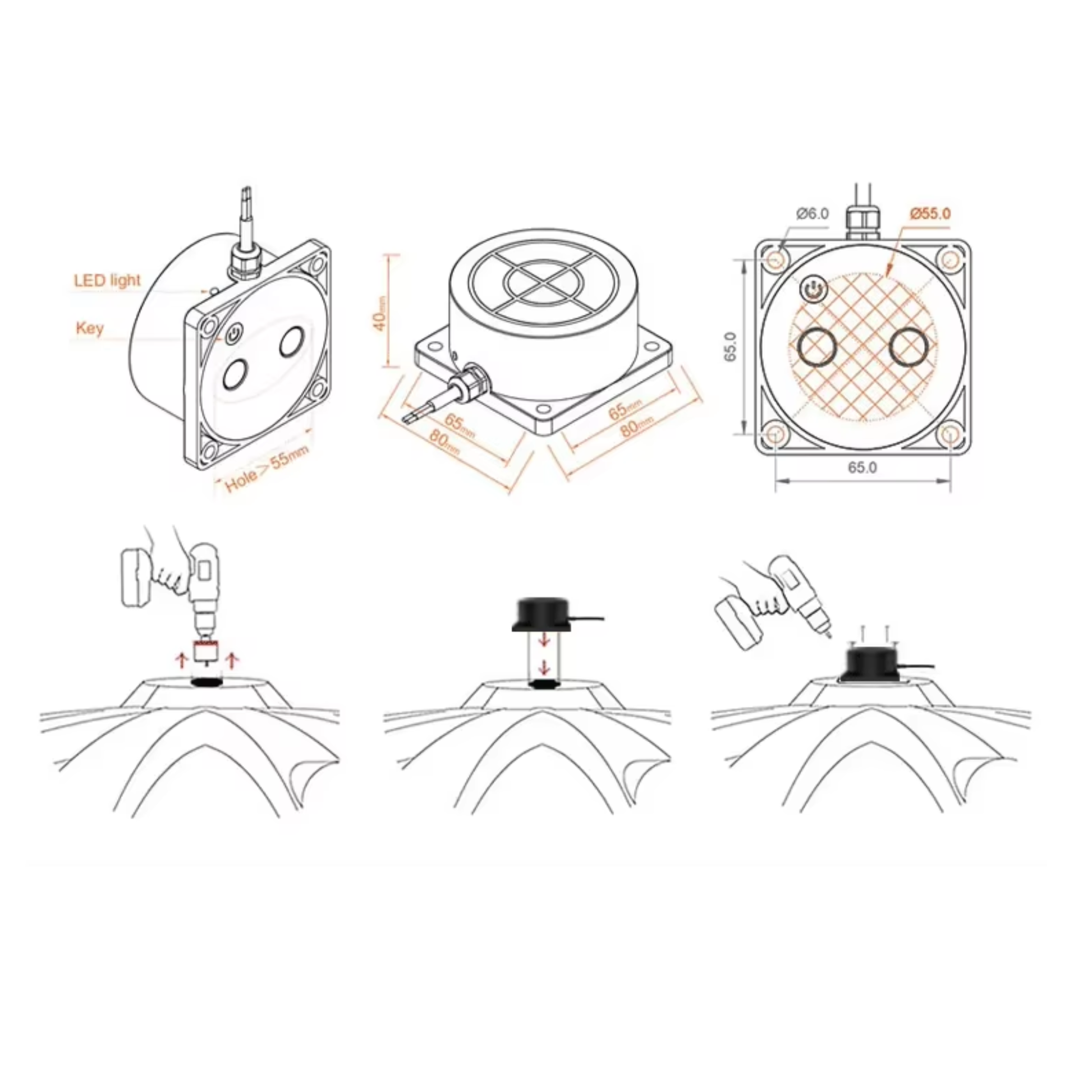 ثبّت الحساس أعلى الخزان بشكل عمودي بحيث يكون مستشعر الموجات فوق الصوتية مواجه لسطح الماء مباشرة.